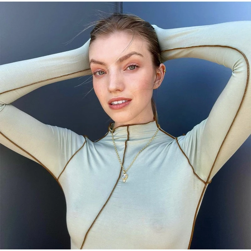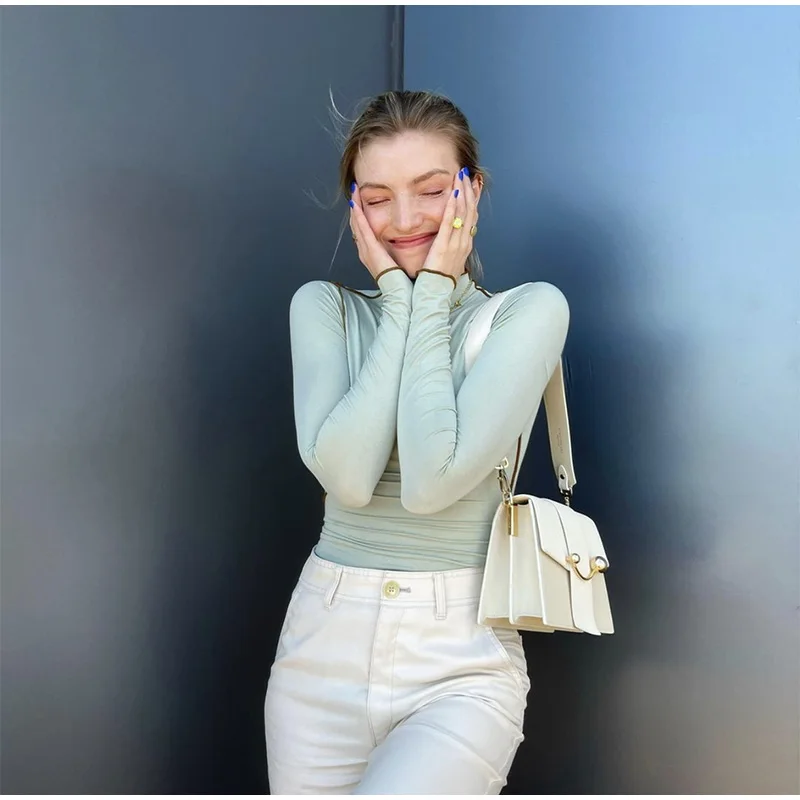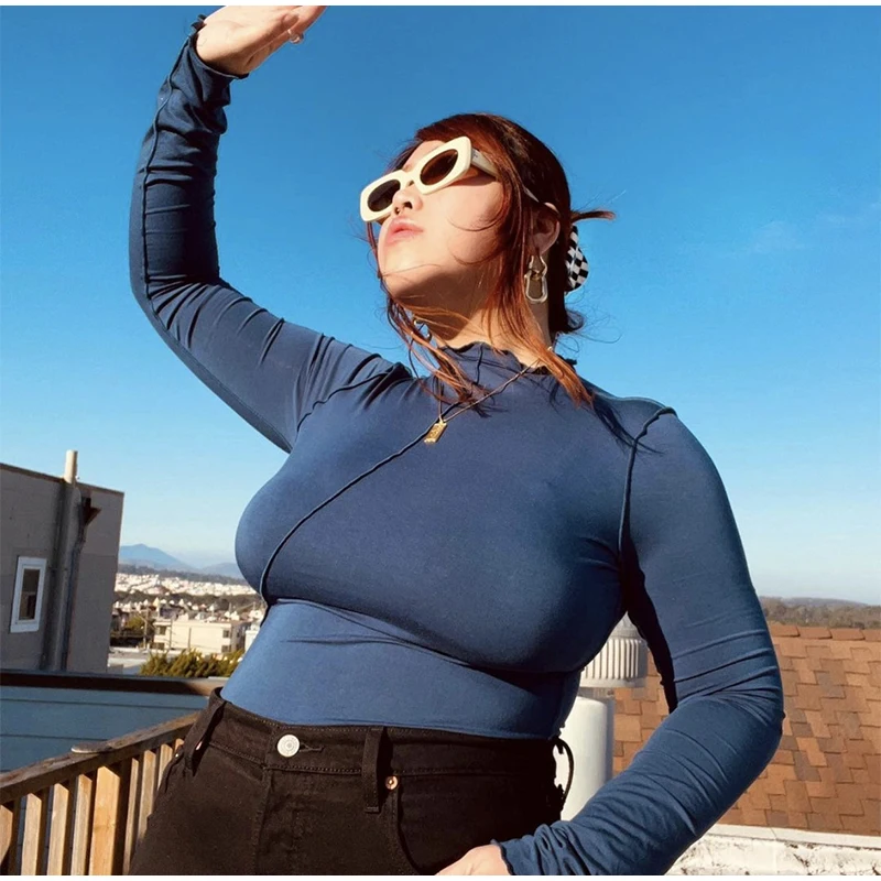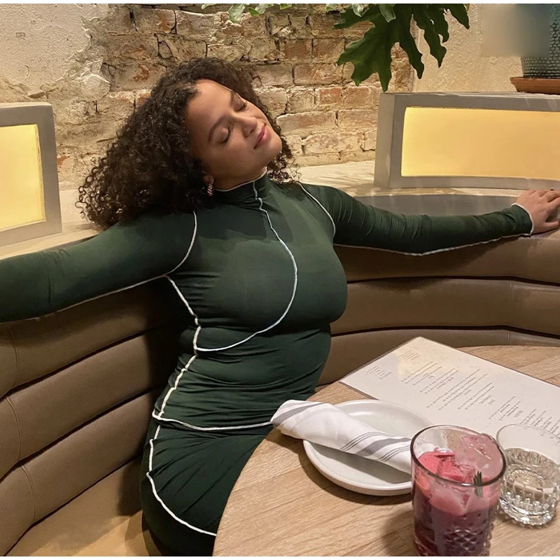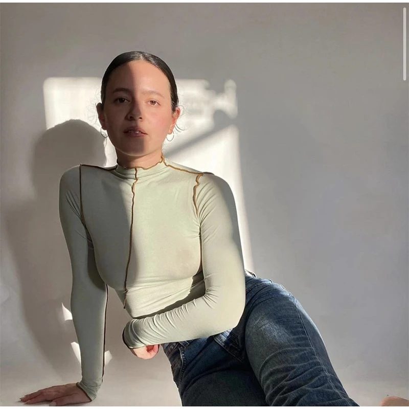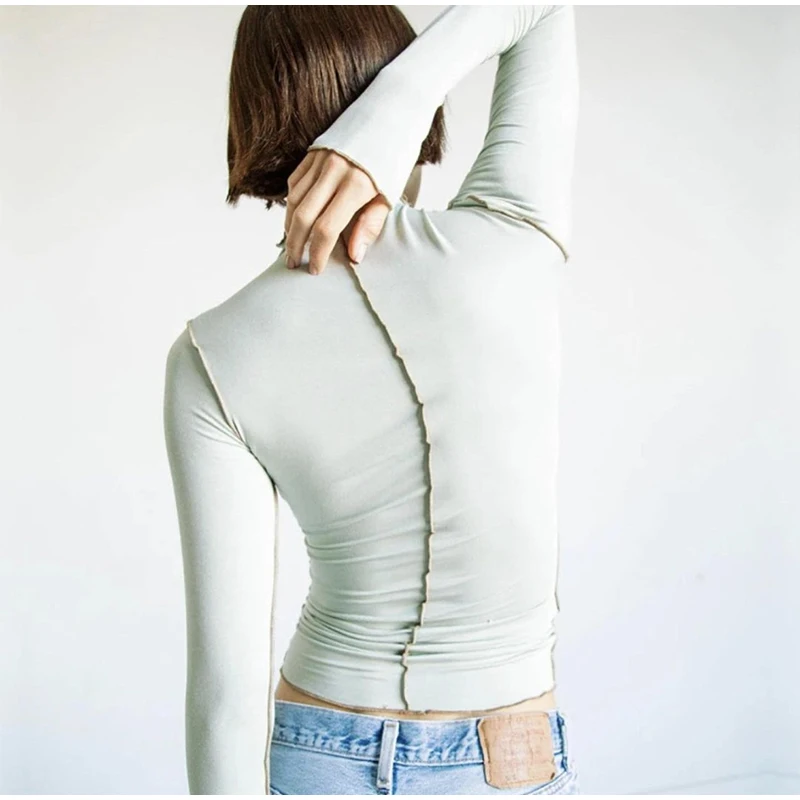 Yipinpay Half Turtleneck Bright Line Two Piece Suit For Women Sexy Long Sleeve Crop Top Skirt Sets 2023 Female Basic Tee Outfits