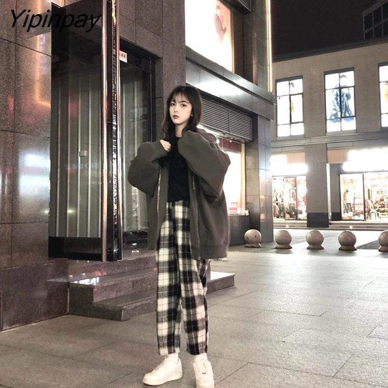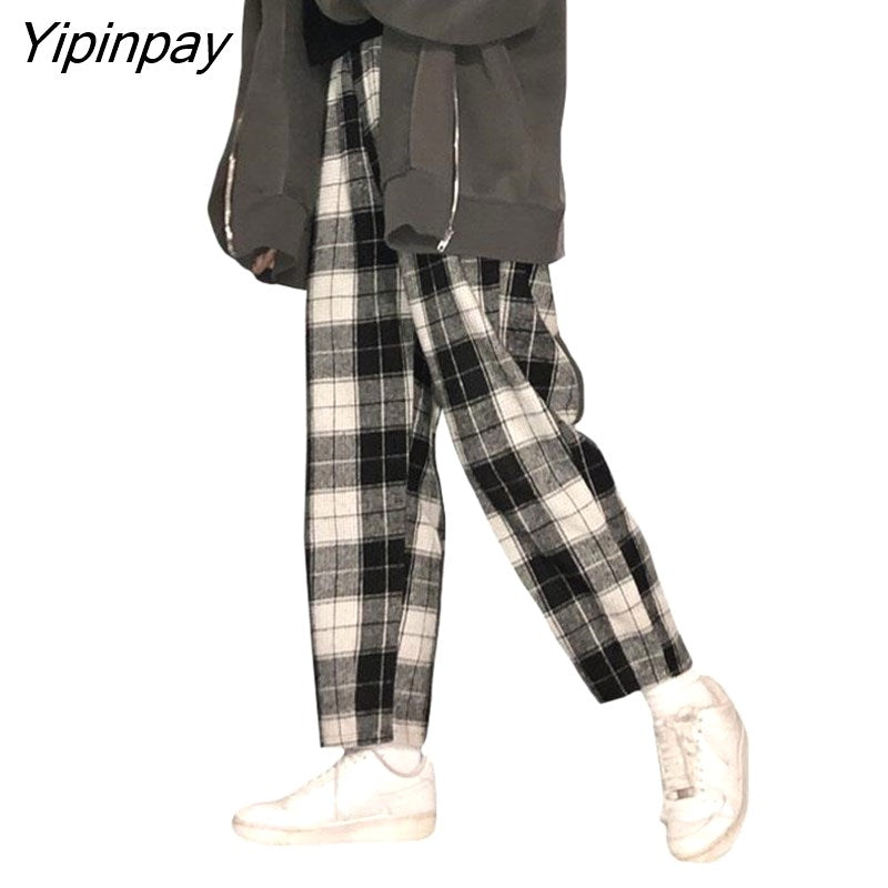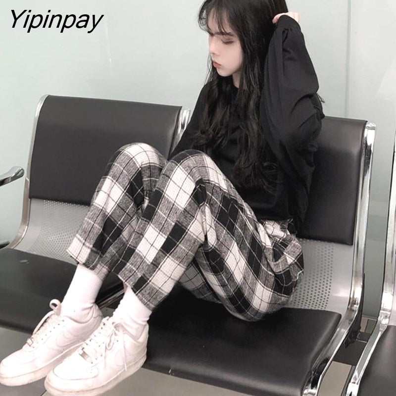 Yipinpay Harajuku Plaid Pants For Women Trousers 2023 Streetwear Woman Harem Pants Autumn Ladies Causal Pants Size
