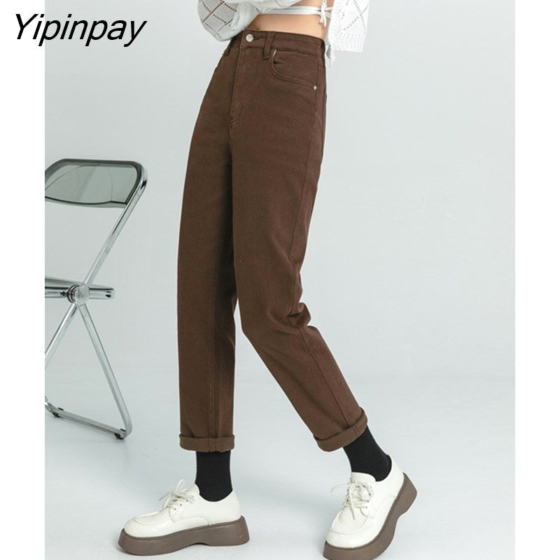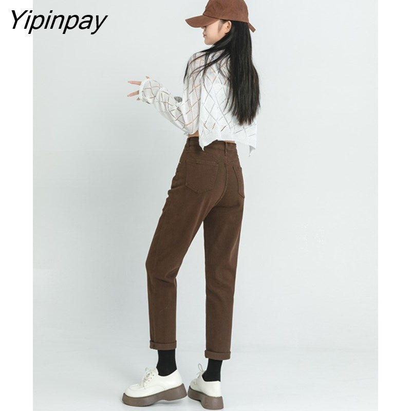 Yipinpay High Waist Elastic Denim Harem Pants Ladies Casual Vintage Wash Jeans Women Autumn Winter Brown Mom Jean Femme