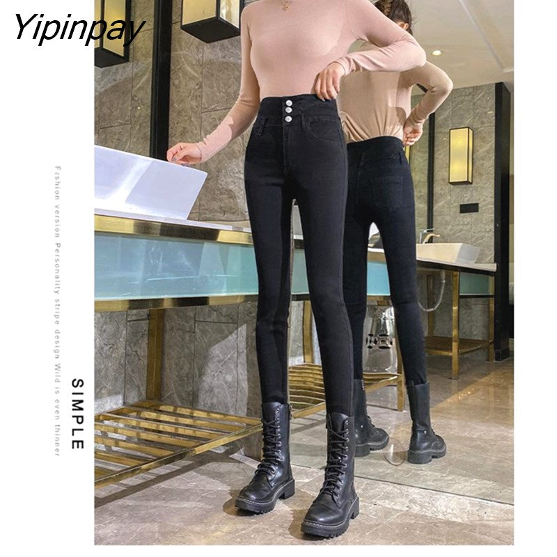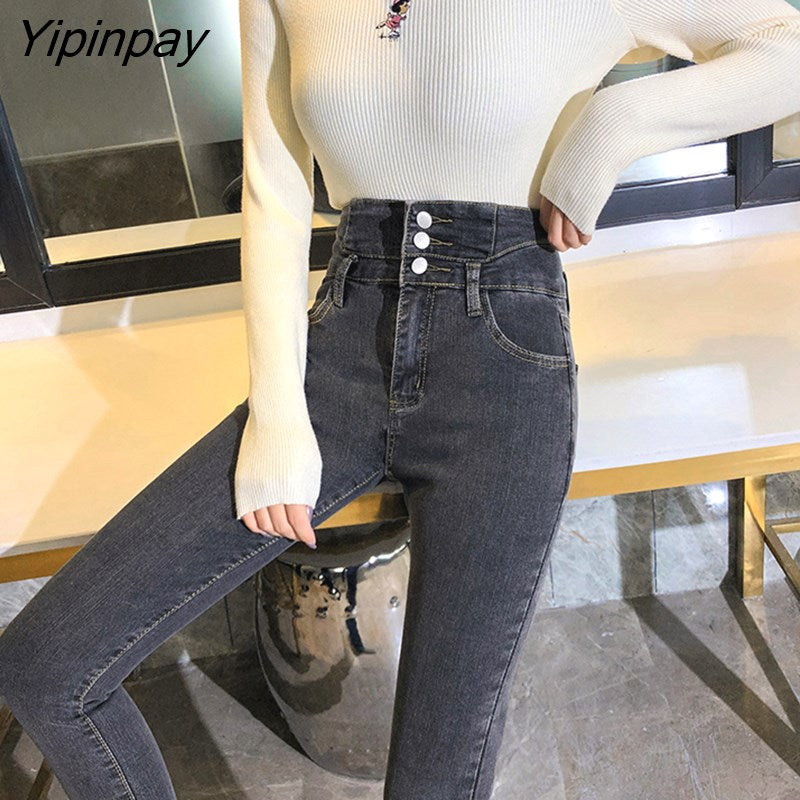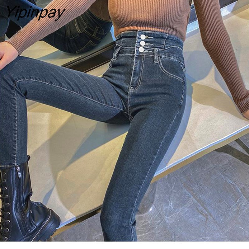 Yipinpay High Waist Skinny Jeans Woman Stretch Distress Jeans Denim Pants Korean Casual Vinatge Pantalon Femme Jean