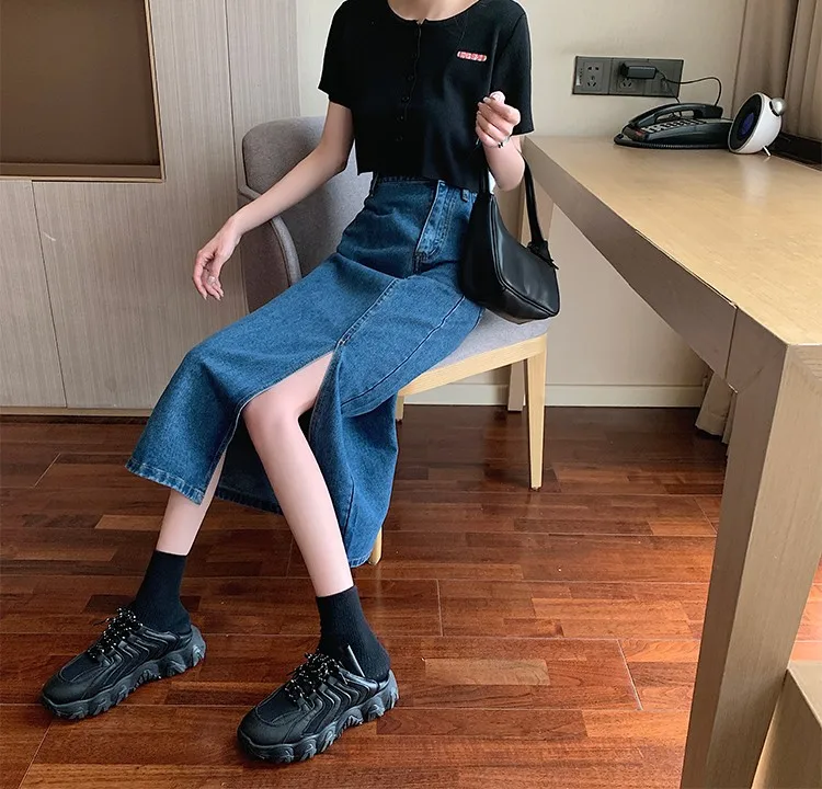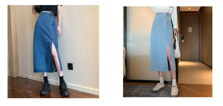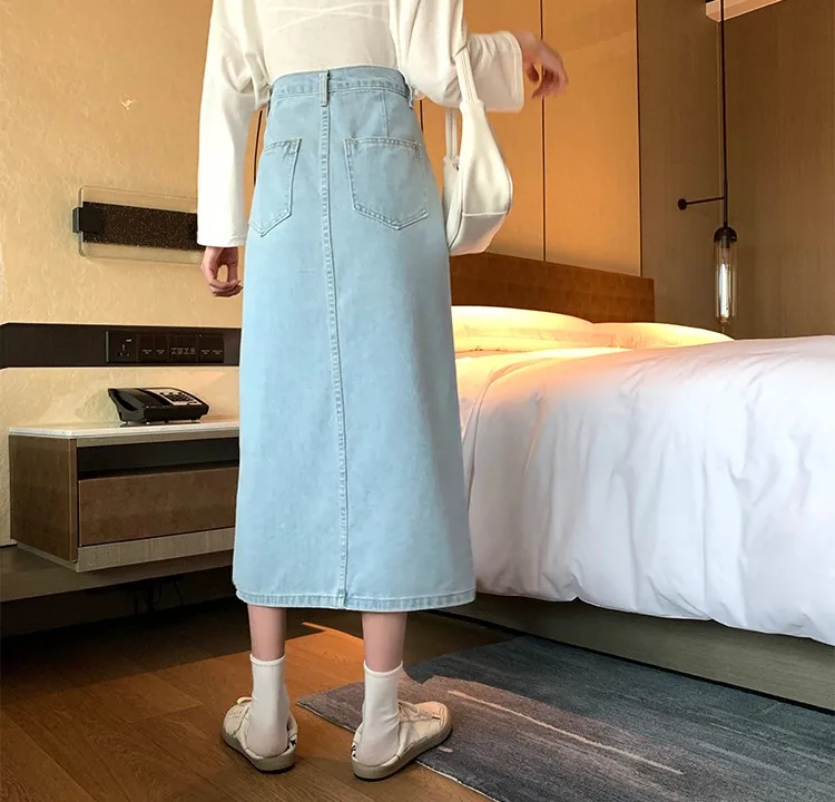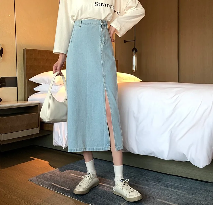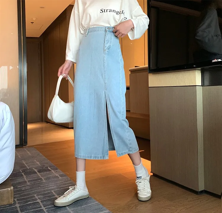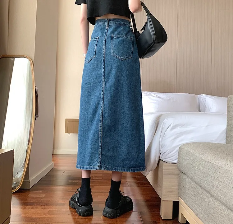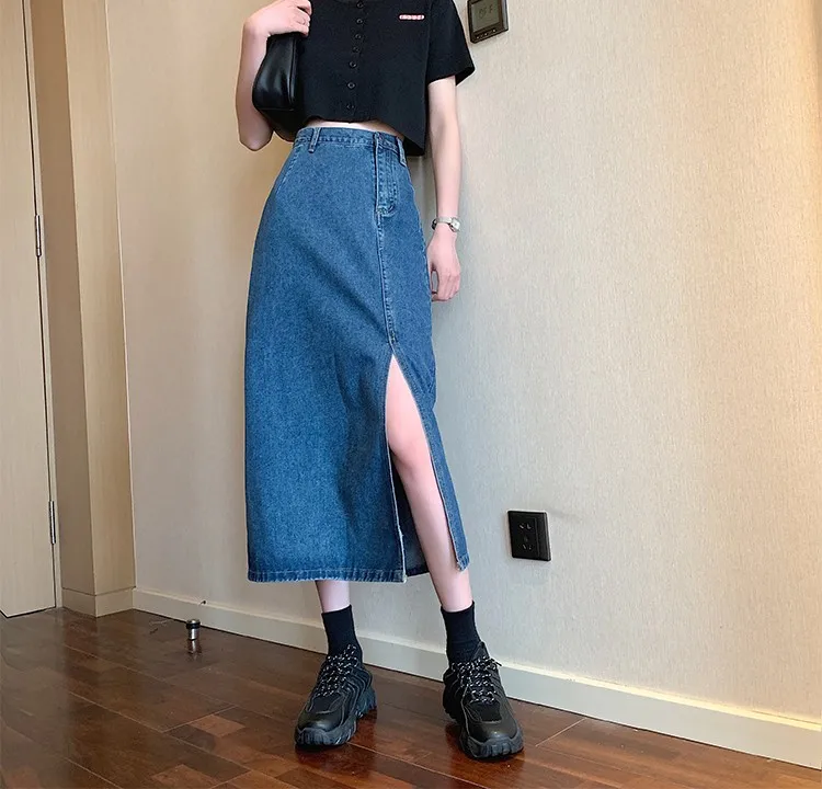 Yipinpay High Waist Vintage Denim Jeans Skirts Casual Wash Split Long Skirt Korean Harajuk Blue Skirt Femme