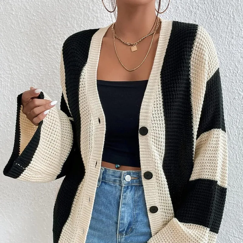Yipinpay Hollow Out Contrast Fashion Cardigan Sweater Knitwear Women Loose Long Sleeve High Street Outwear Patchwork Female Coat