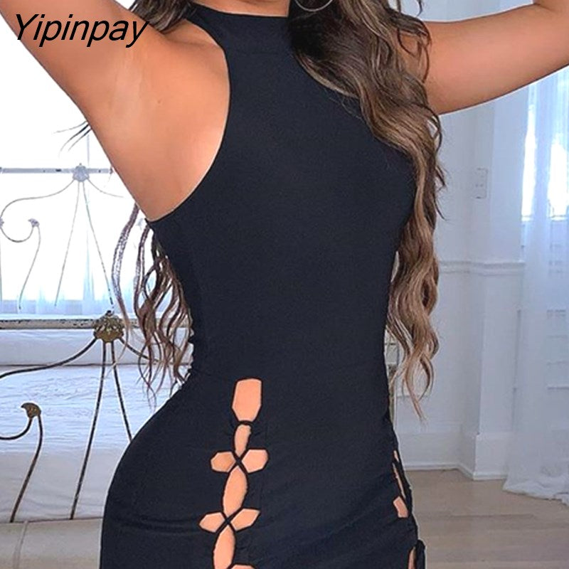 Yipinpay Hollow Out Lace-Up Sleeveless Bodycon Dress Sexy Dress Women Dress