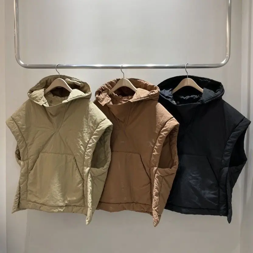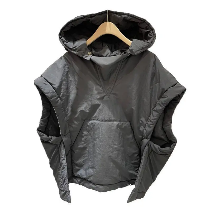 Yipinpay Hooded Collar Solid Color Sleeveless Split Vest Parkas Winter Coat Women Puffer Jacket Loose Casual Jaqueta Feminina Top
