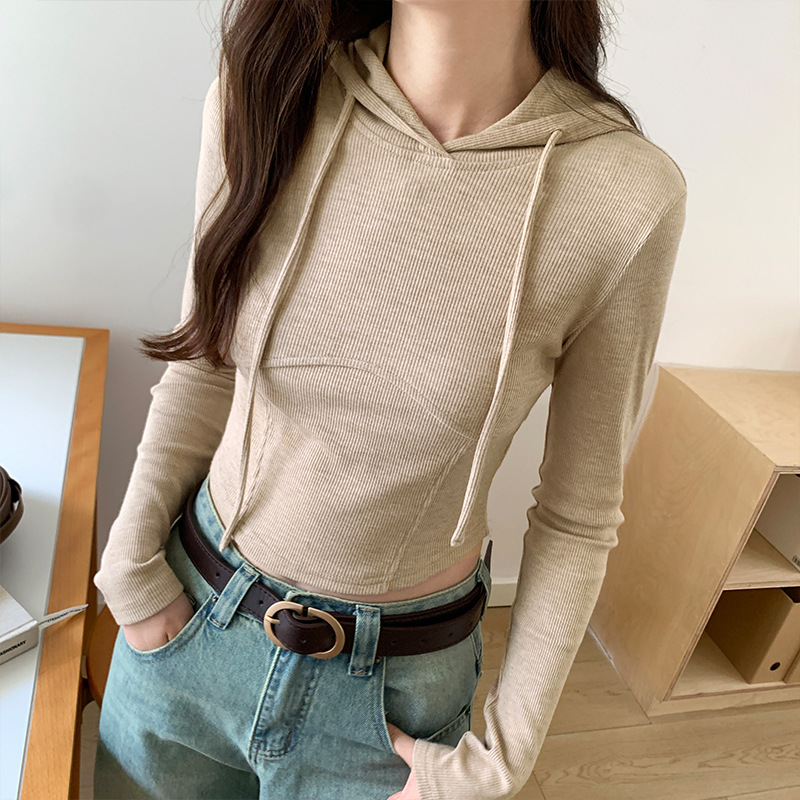 Yipinpay Hooded Long-Sleeved T-Shirt For Women In Autumn, The New Bottomed Shirt Is Slim, Slim, Short And Underwear.