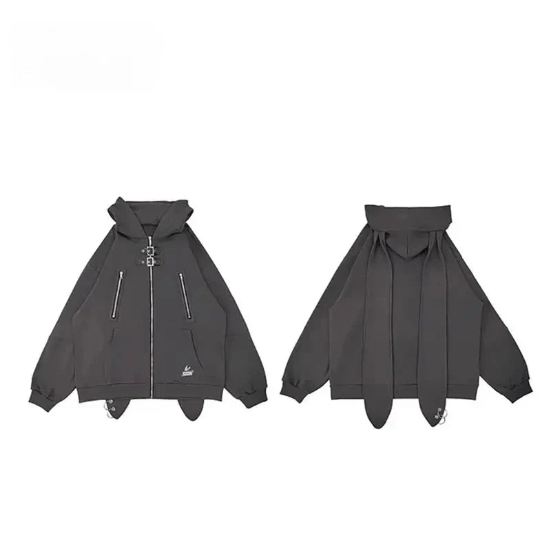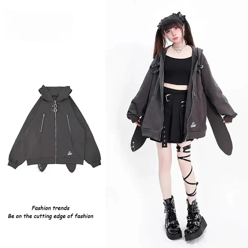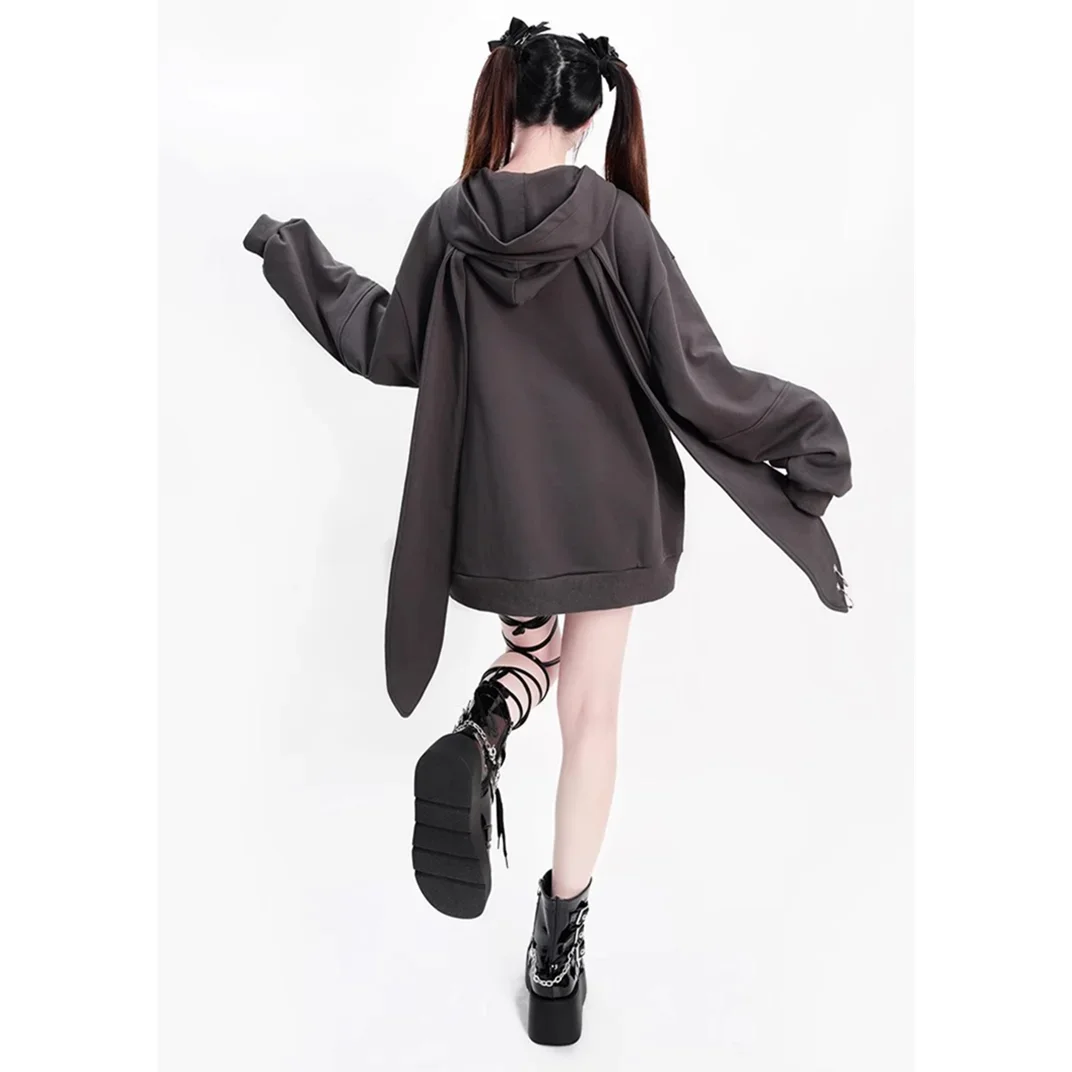 Yipinpay Hoodies Rabbit Ear Hooded Coat Women Top Autumn/Winter New Retro Spicy Girl Mid Length Oversized Sweatshirt Women Clothing