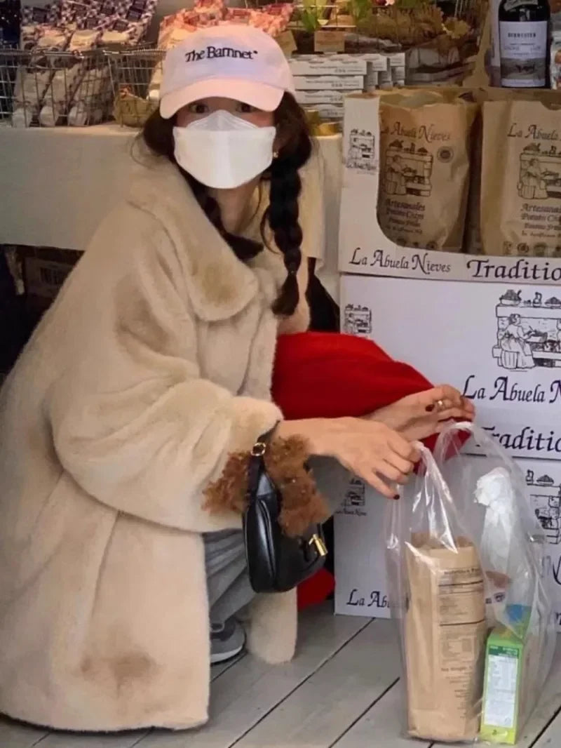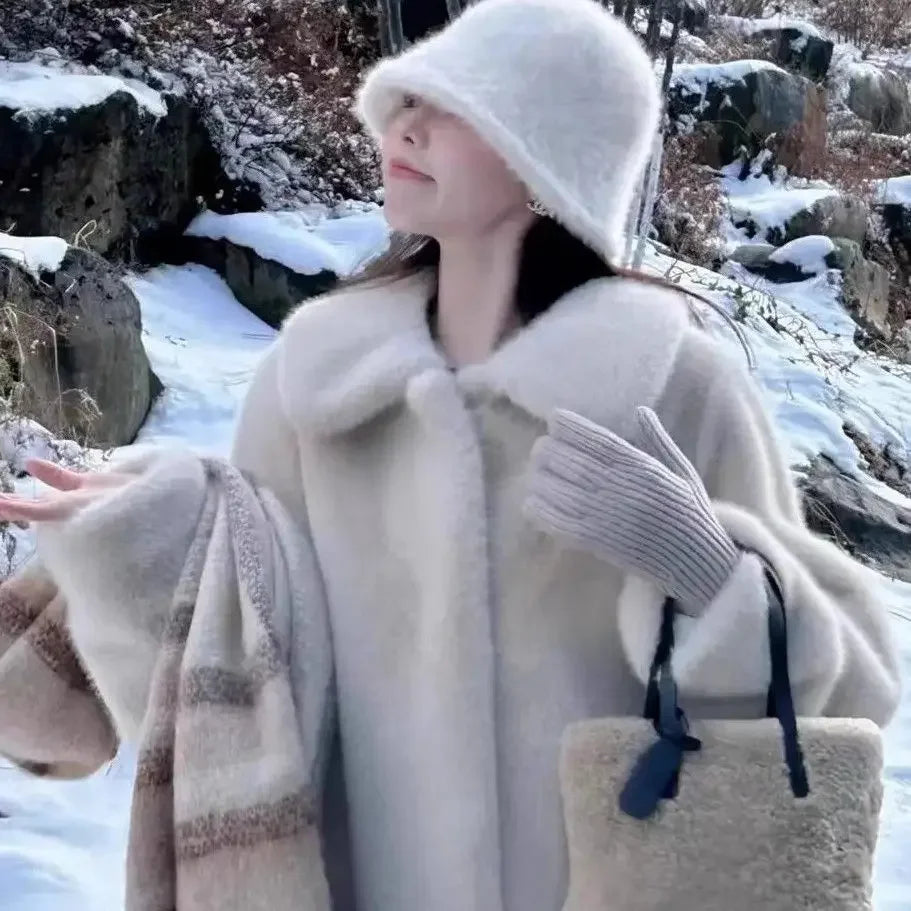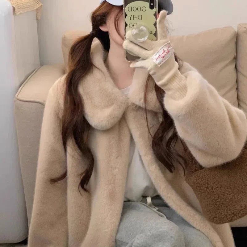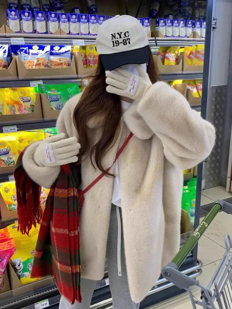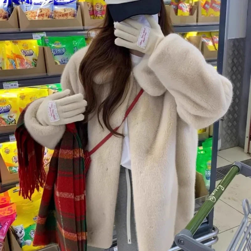 Yipinpay Hot Girl Faux Fur Coat Women's Autumn and Winter Mid-length Loose Thickened Warm Plush Soft Coat Fashion Female Clothes