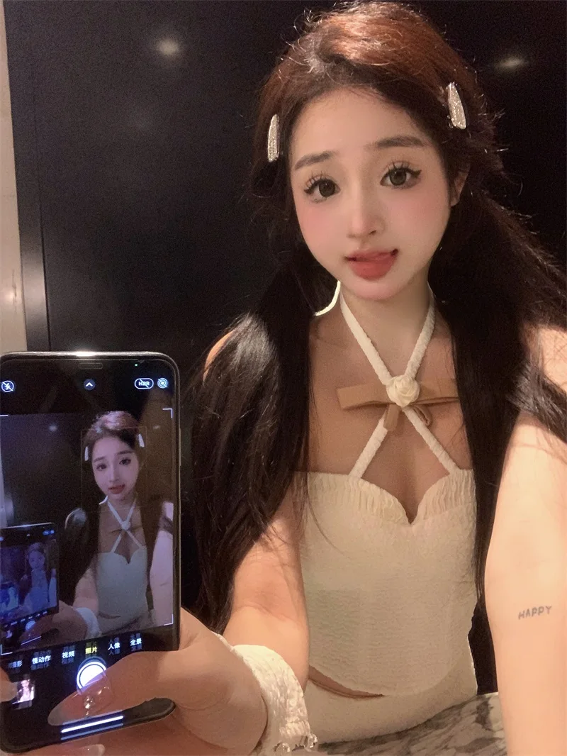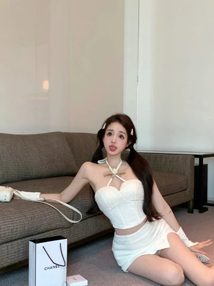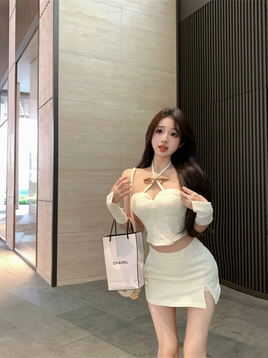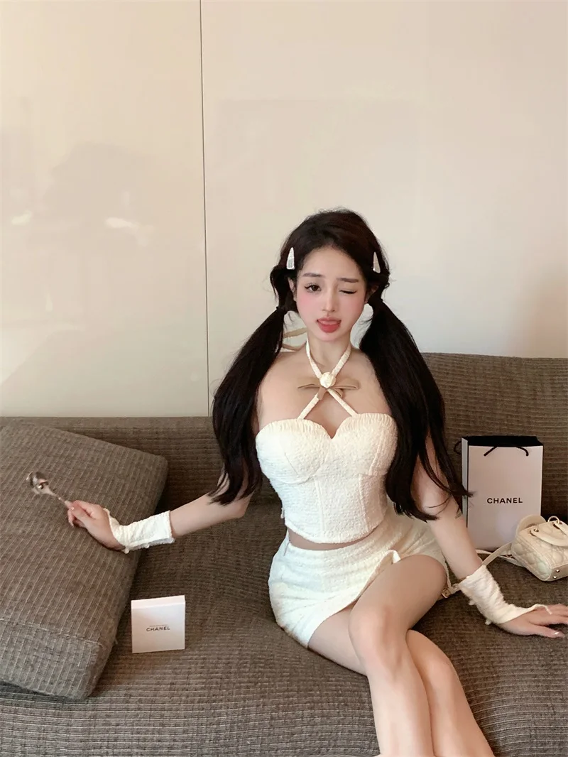Yipinpay Hot Girl Suit Women's Spring Slim Fit Halter Neck Tank Top High Waist Wrap Hip Skirt Two-piece Set Fashion Female Clothes