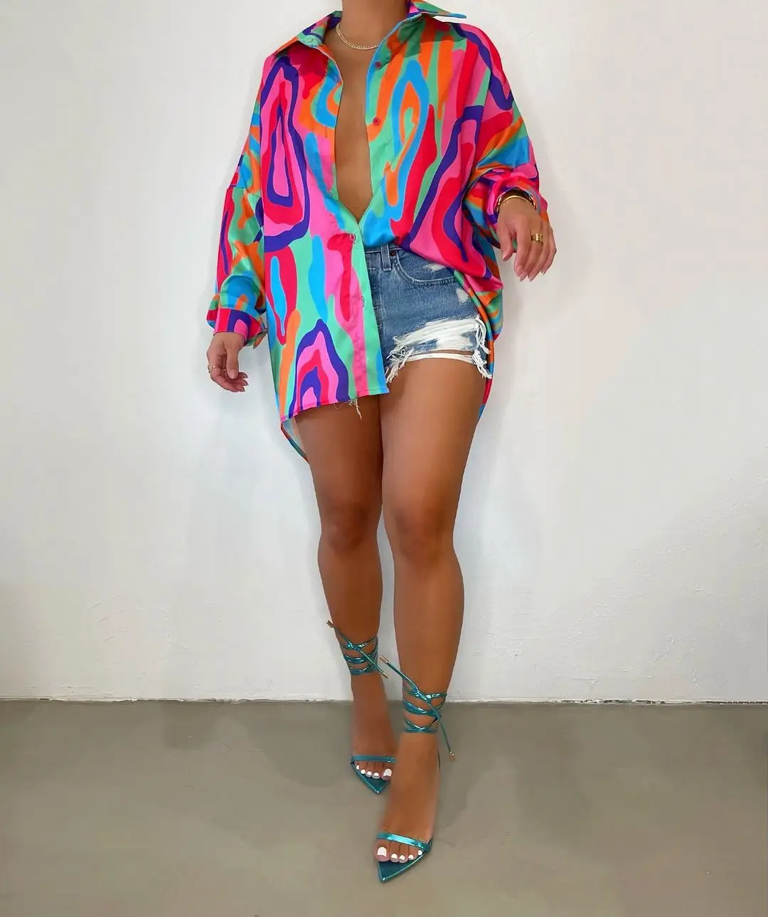 Yipinpay Hot Sale Vintage Fashion Women Long Shirt High Quality Lady Clothes Vintage Chic Sexy Short Mini Dress Women Shirts Blouses