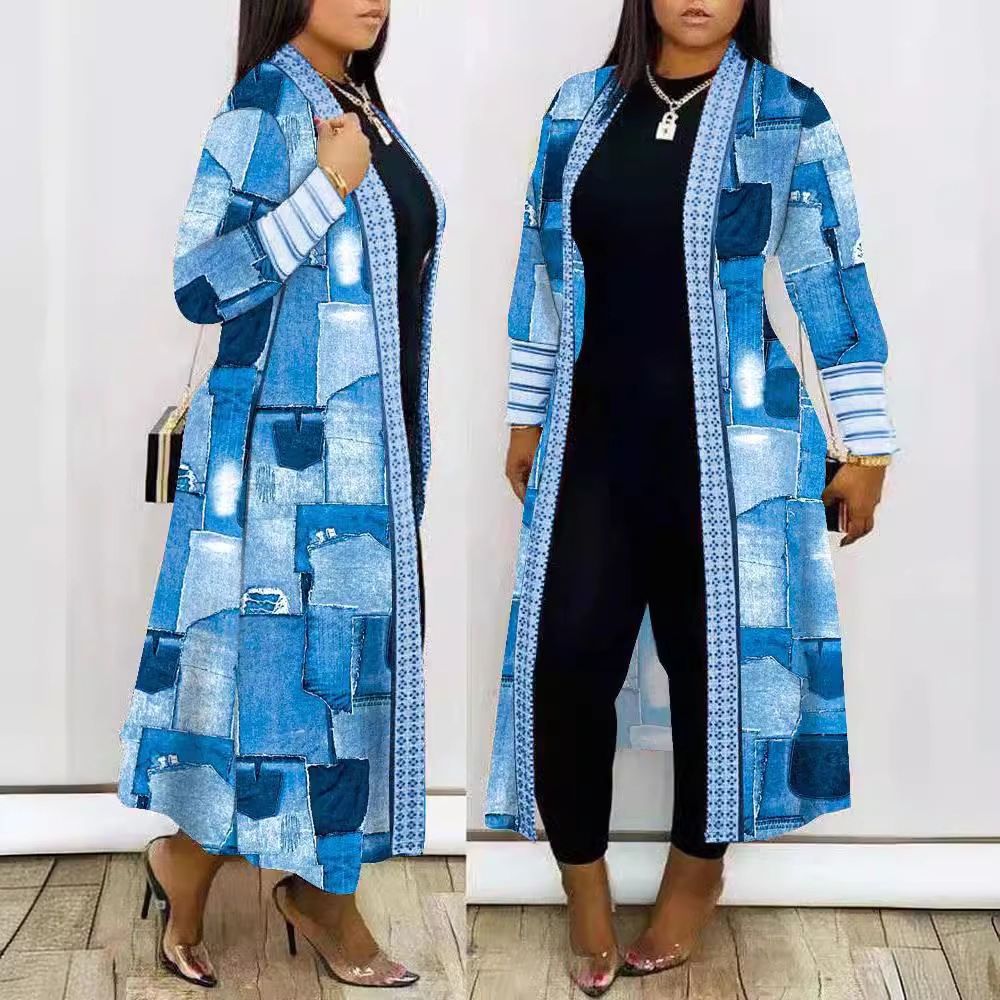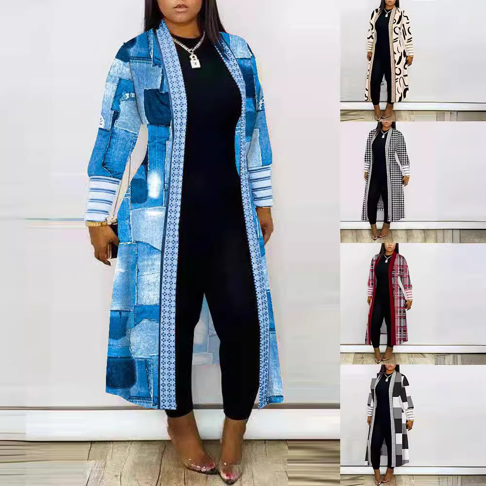 Yipinpay Independent Station Fashion Printing Long-Sleeved Spliced Coat Women's Wear Spot