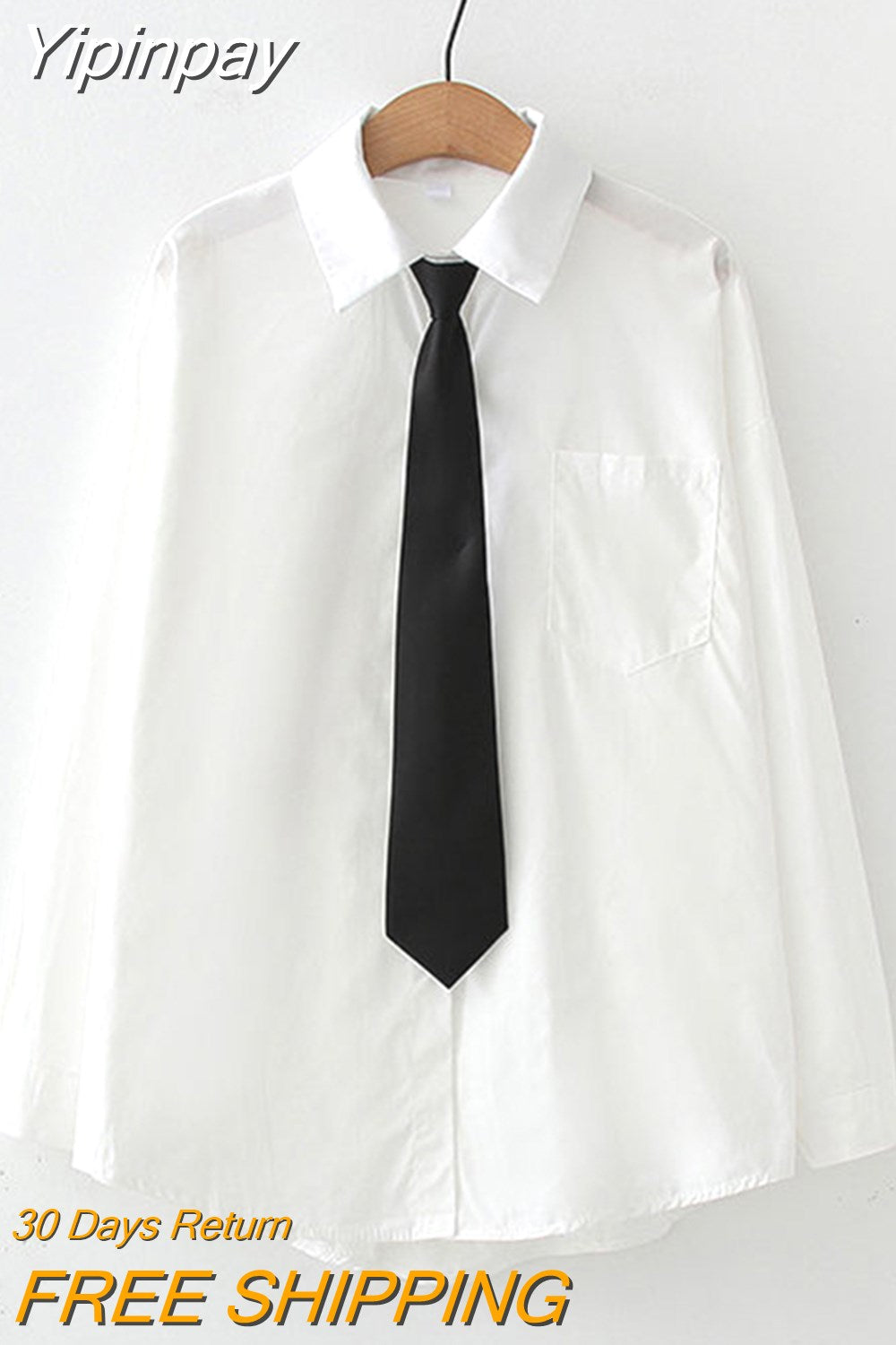 Yipinpay Jk Women White Shirts Long Sleeve Fall Student Shirts Casual Button Up Japan Black Tie Preppy Style Girls Tops New