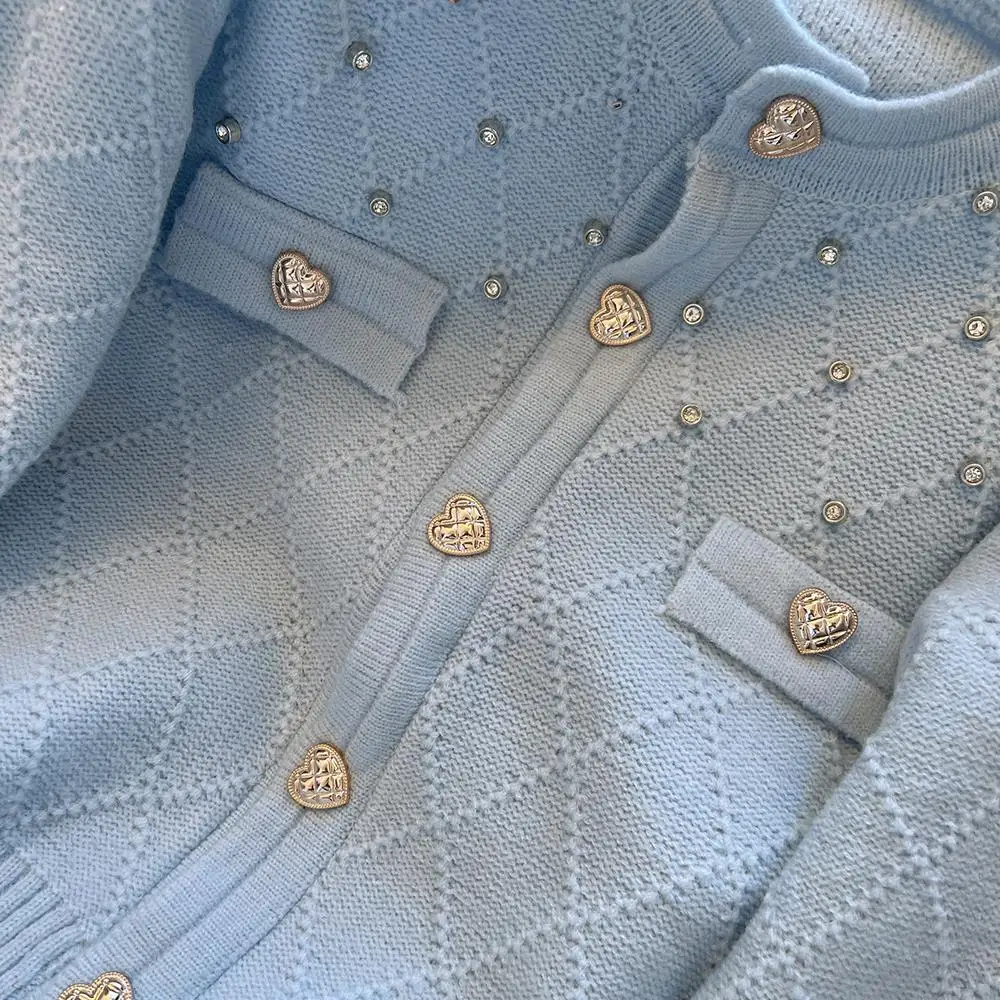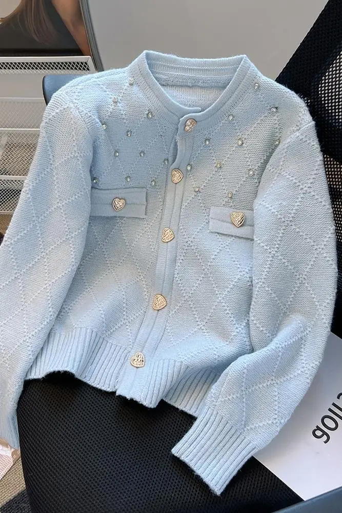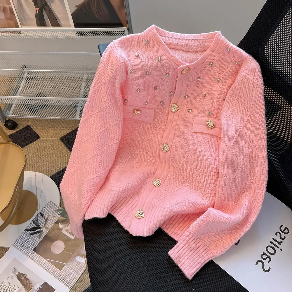 Yipinpay Knitted Cardigan Sweater Luxury Diamond O-Neck Long Sleeve Top Women's Autumn Winter Korean Soft Comfort Coat