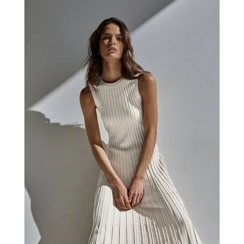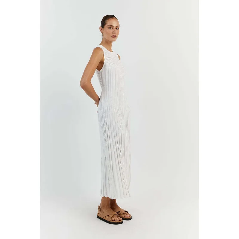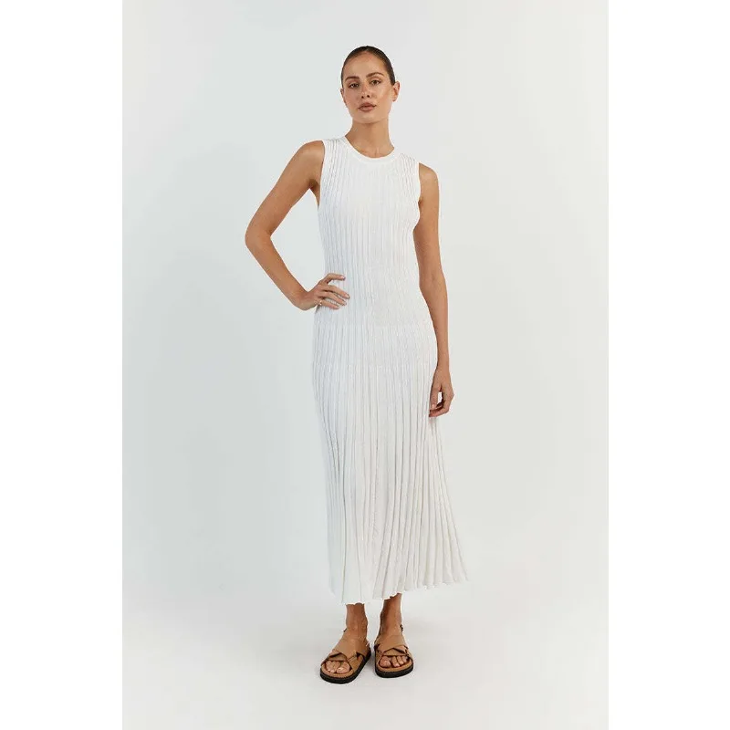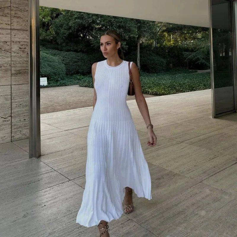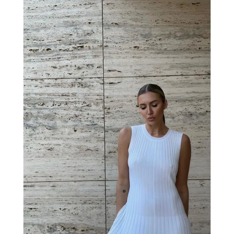 Yipinpay Knitwear White Casual Long Dress For Women Sleeveless High Waist Slim Strapless Loose Dress Solid Basic Ladies Maxi Dress