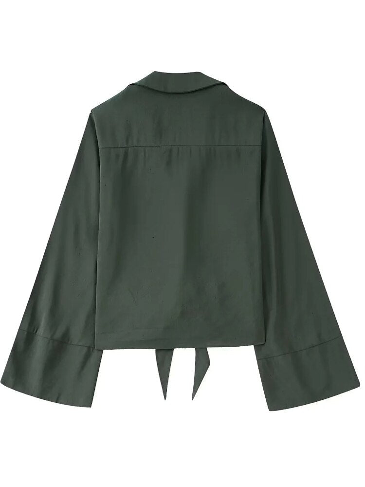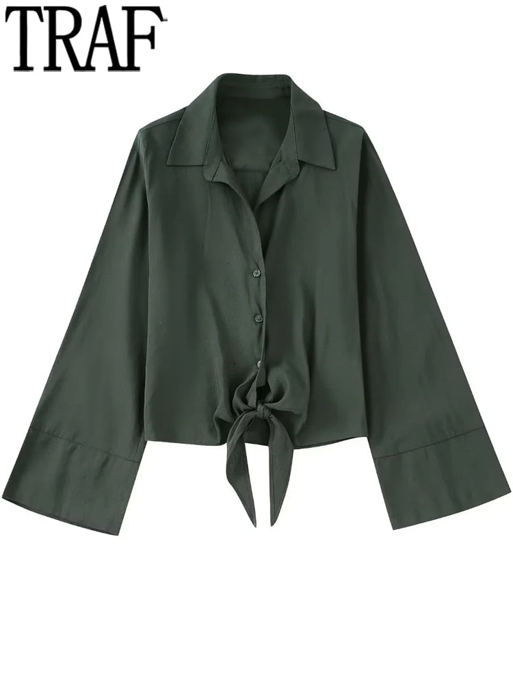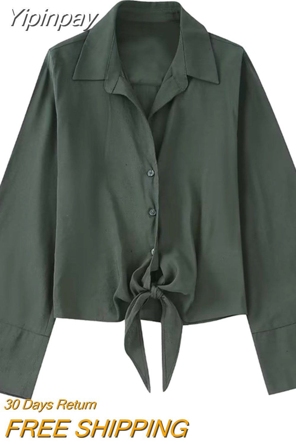 Yipinpay Knotted Crop Top Women Tied Button Up Shirt Chic Woman Blouse Streetwear Long Sleeve Summer Top Women's Cropped Blouse