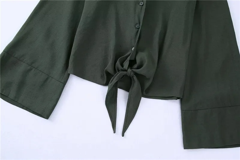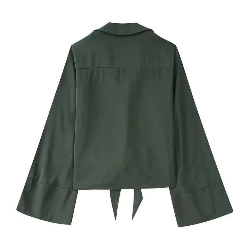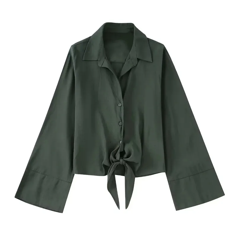Yipinpay Knotted Crop Top Women Tied Button Up Shirt Chic Woman Blouse Streetwear Long Sleeve Summer Top Women's Cropped Blouse