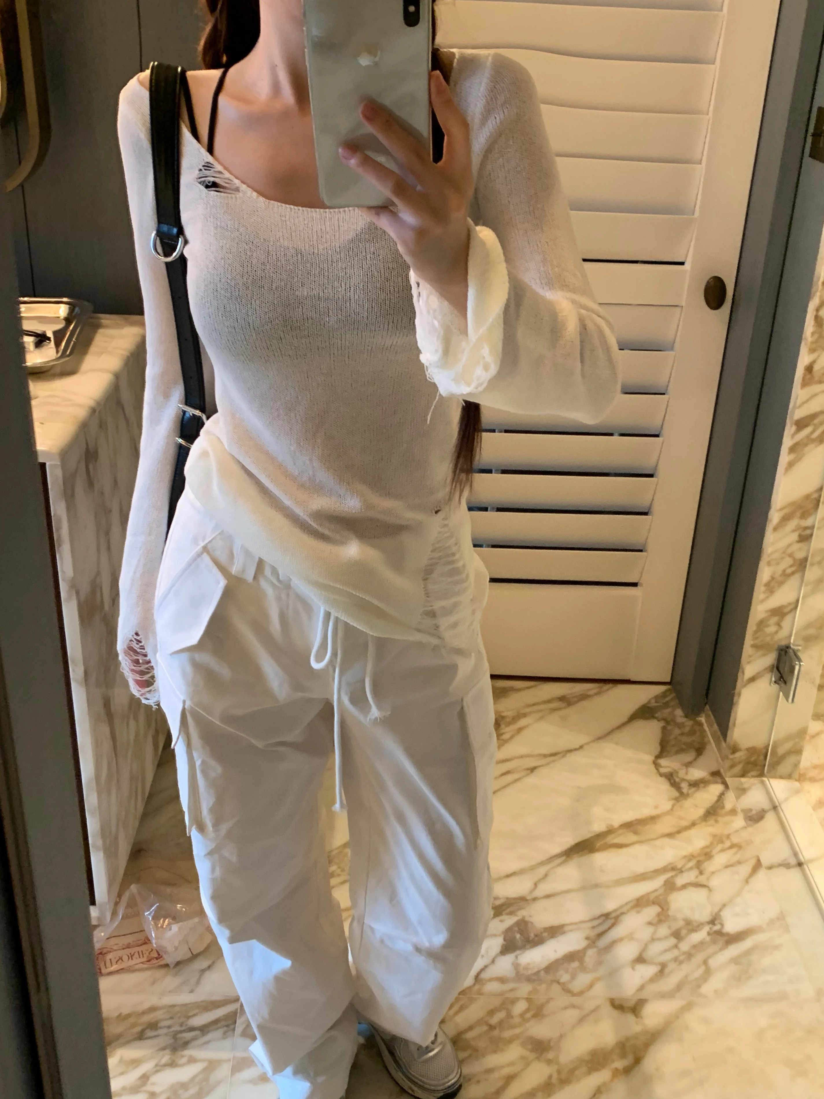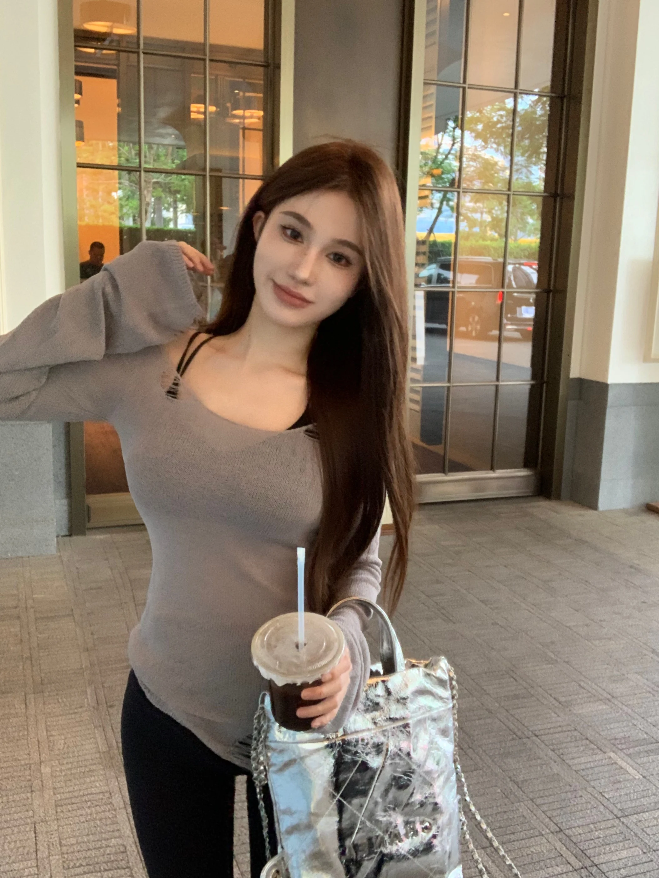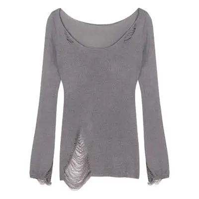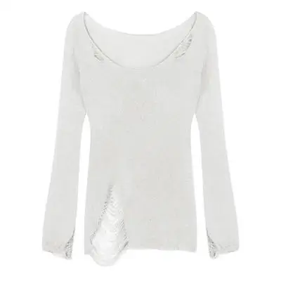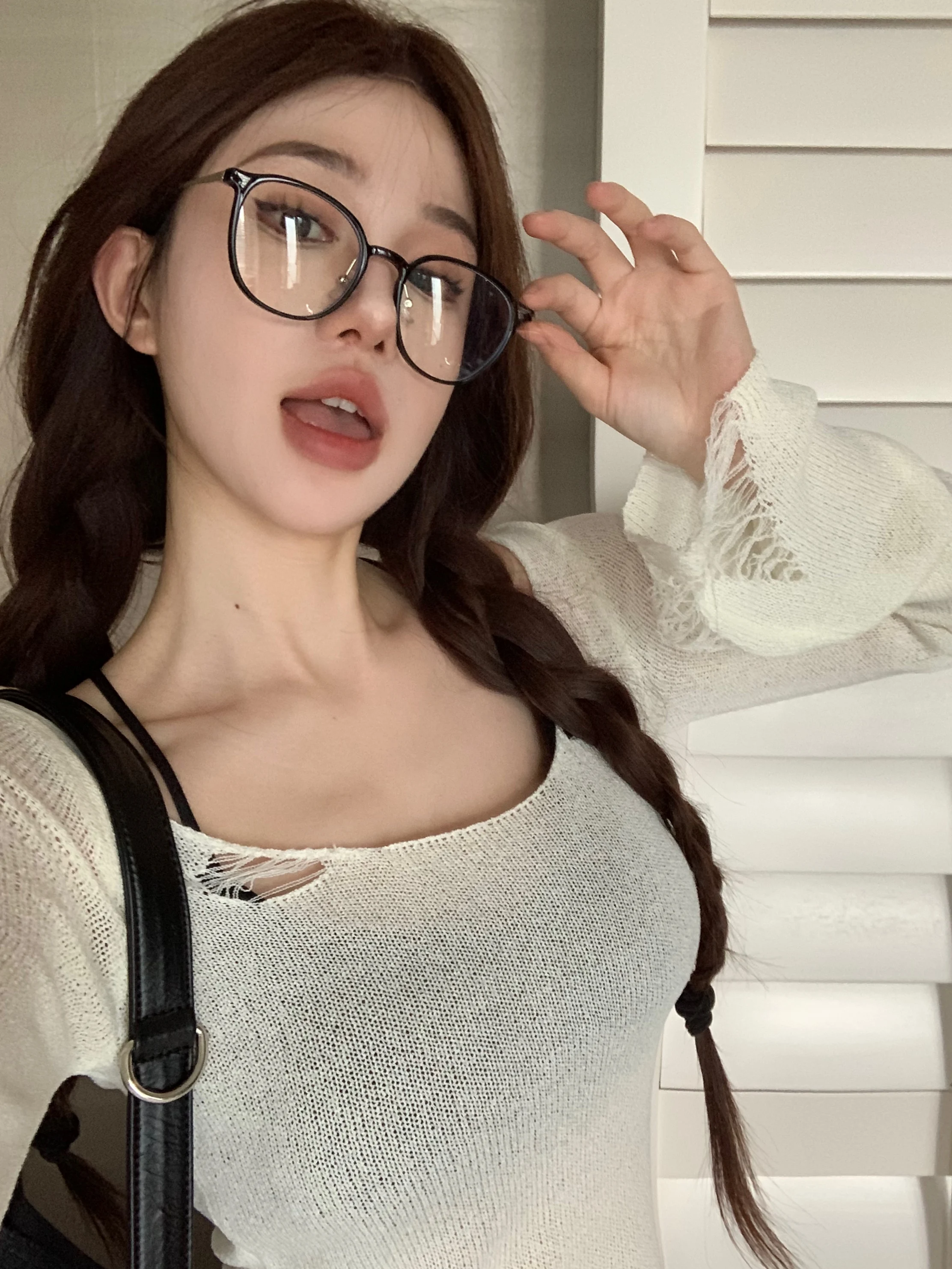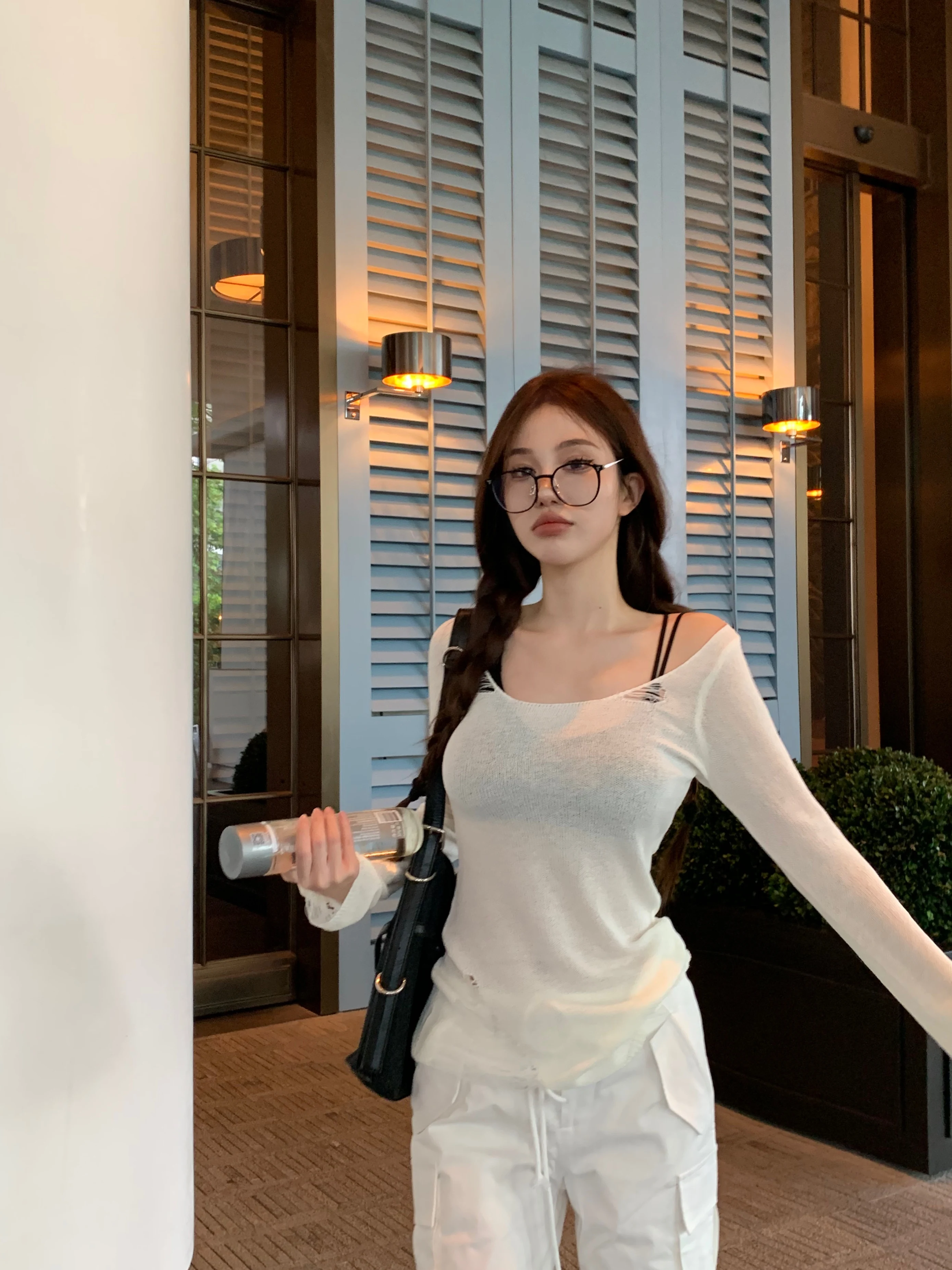 Yipinpay Korean Style Long-sleeved Ripped Thin Knitted Sunscreen Blouse T-shirt Tops With Small Tube Top Fashion Women's Clothing