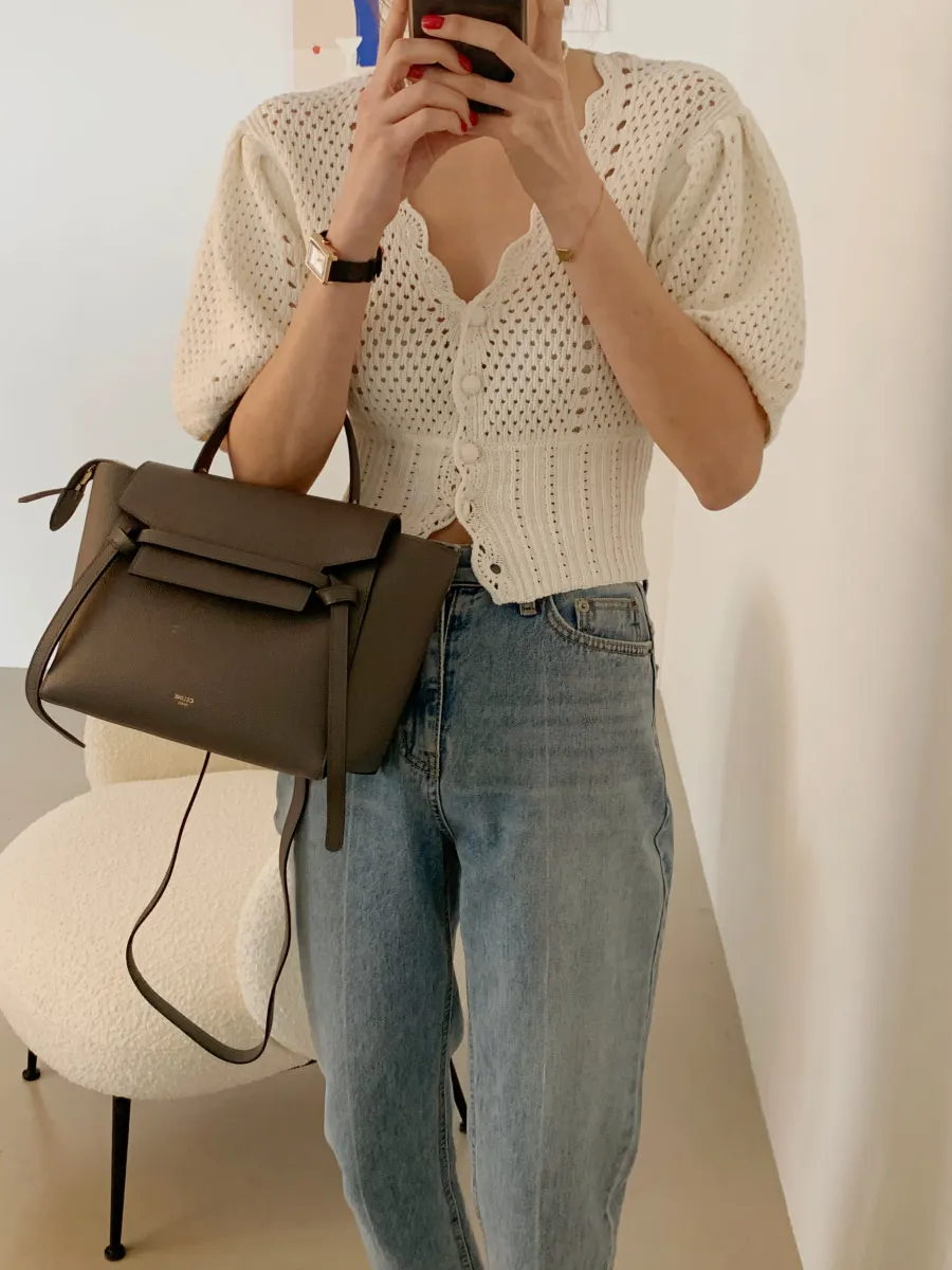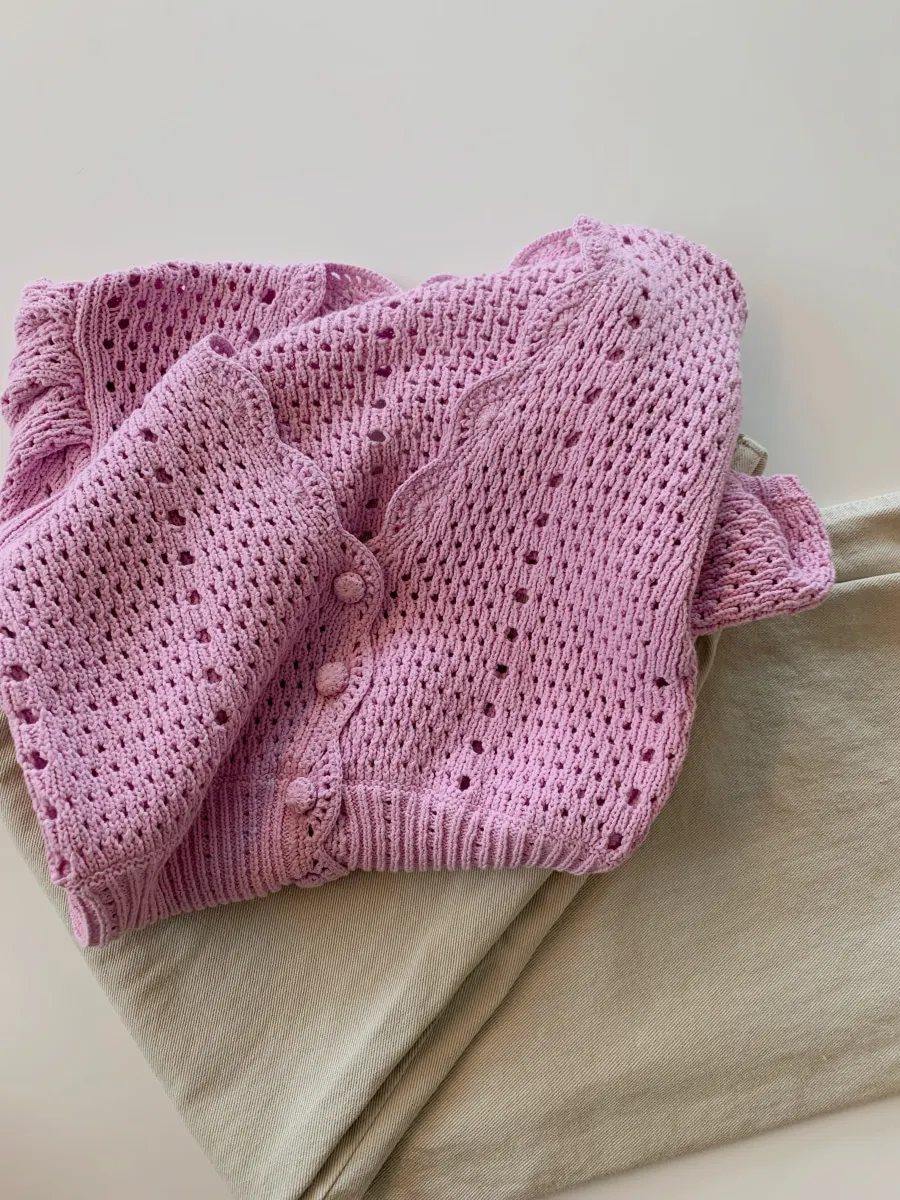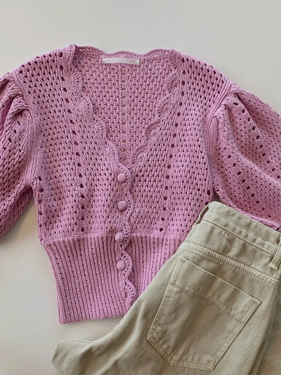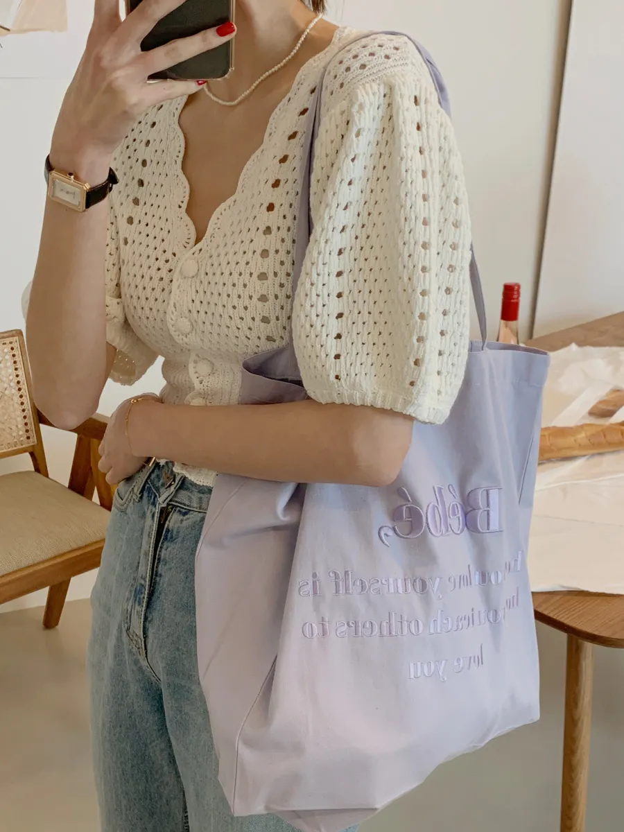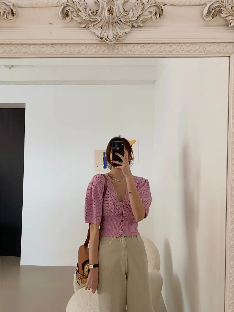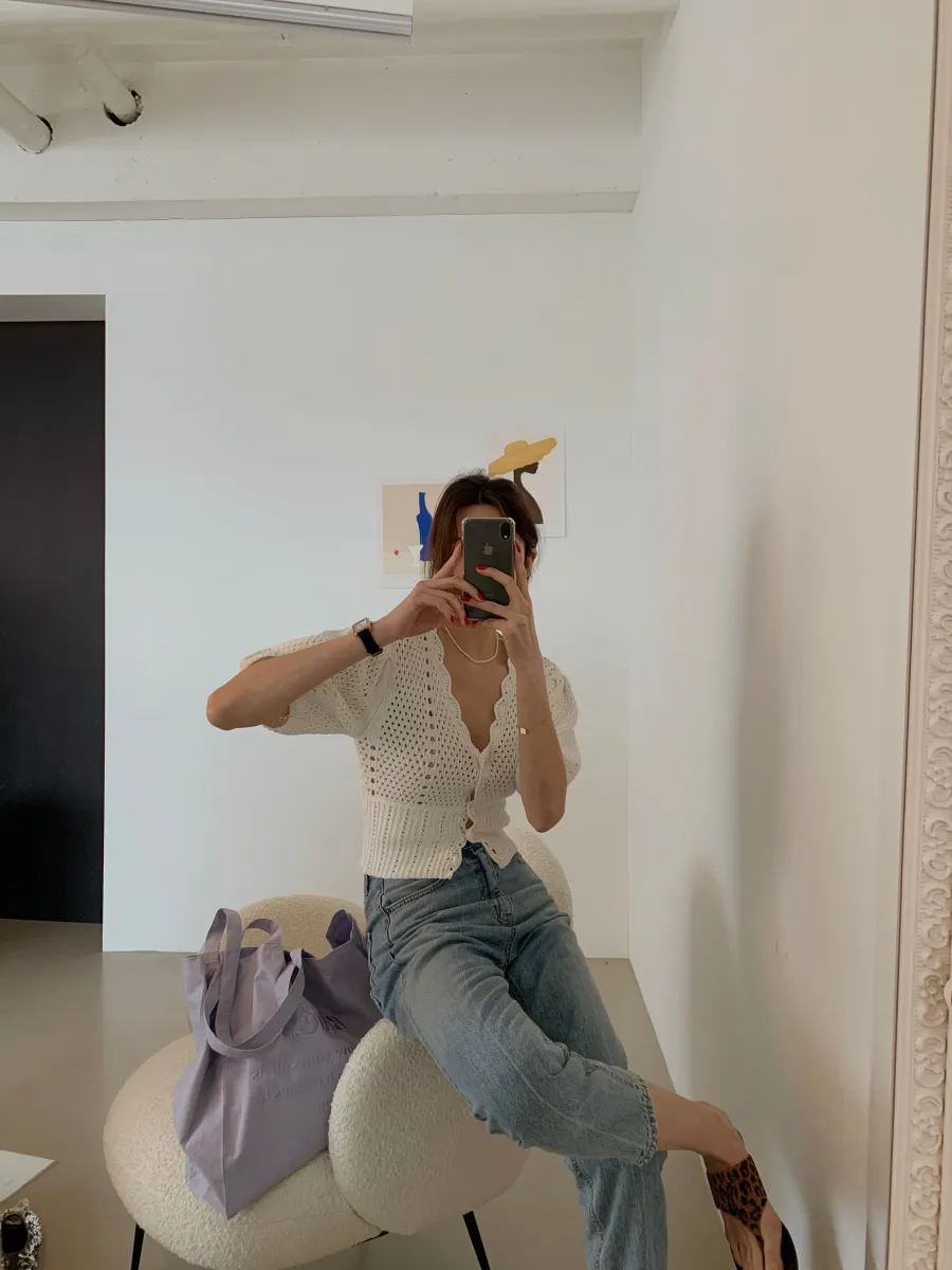 Yipinpay Korean V Neck Crop Top Puff Short Sleeve Sweater Mujer Summer Cardigan Knitted Cropped Cardigan Sueters Hollow Sweet