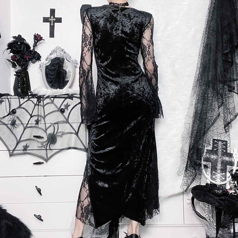 Yipinpay Lace Spliced Cross Dress, Dark Style, Sexy Slimming, Hip Split Dress