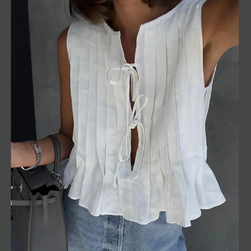 Model Number: Pleated Lace-up Tank Top Skirts Set