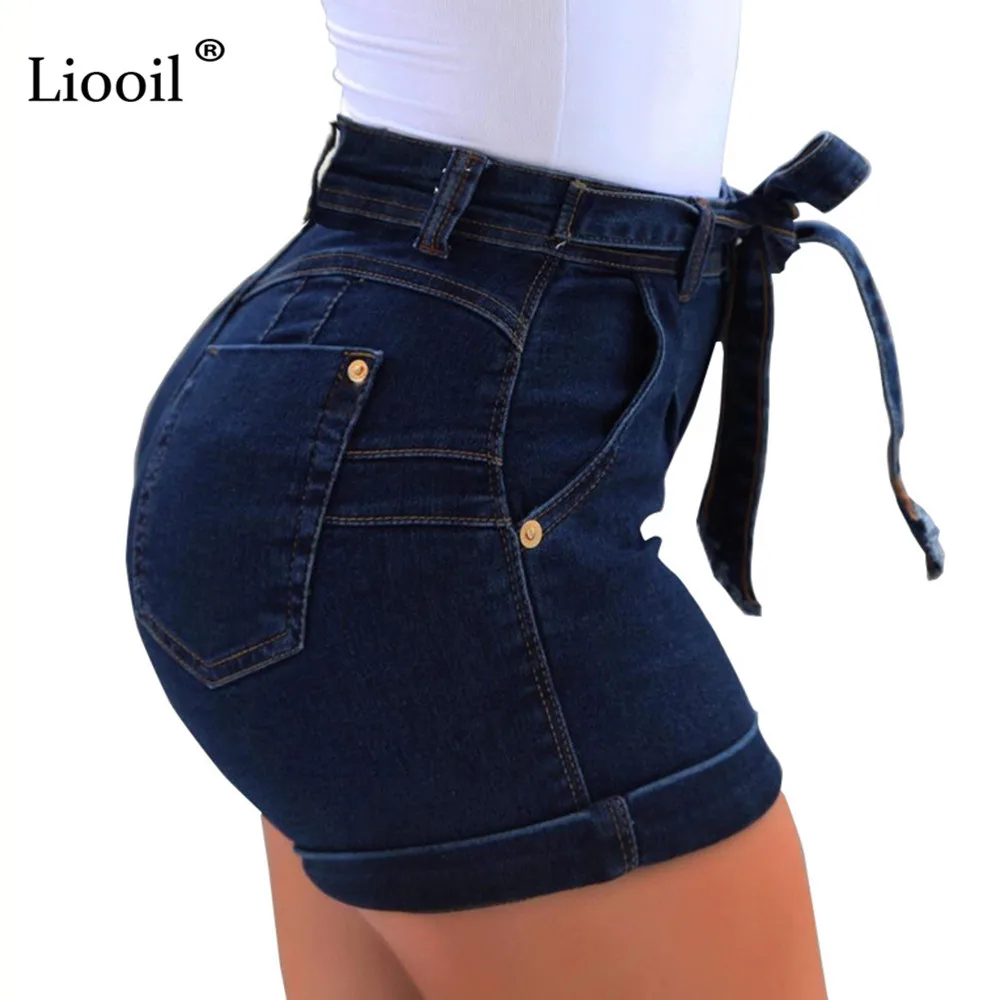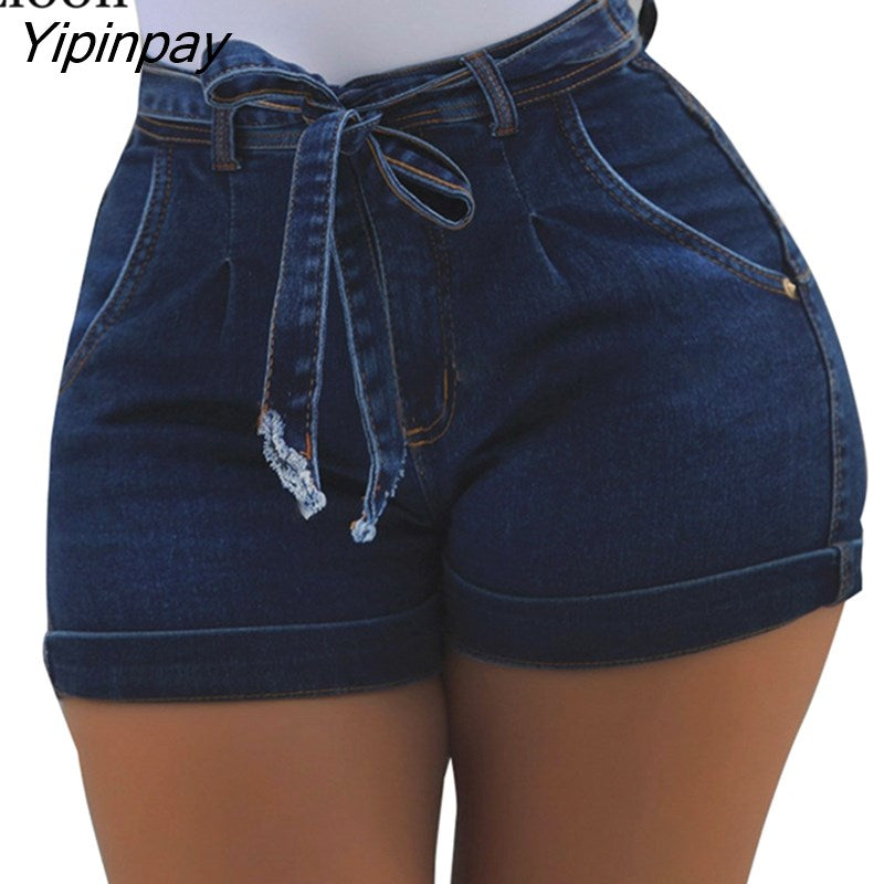 Yipinpay Ladies Short Jeans 2023 Cotton Blue Jean Shorts High Waist Women Summer Lace-Up Pockets Sexy Denim Woman Shorts
