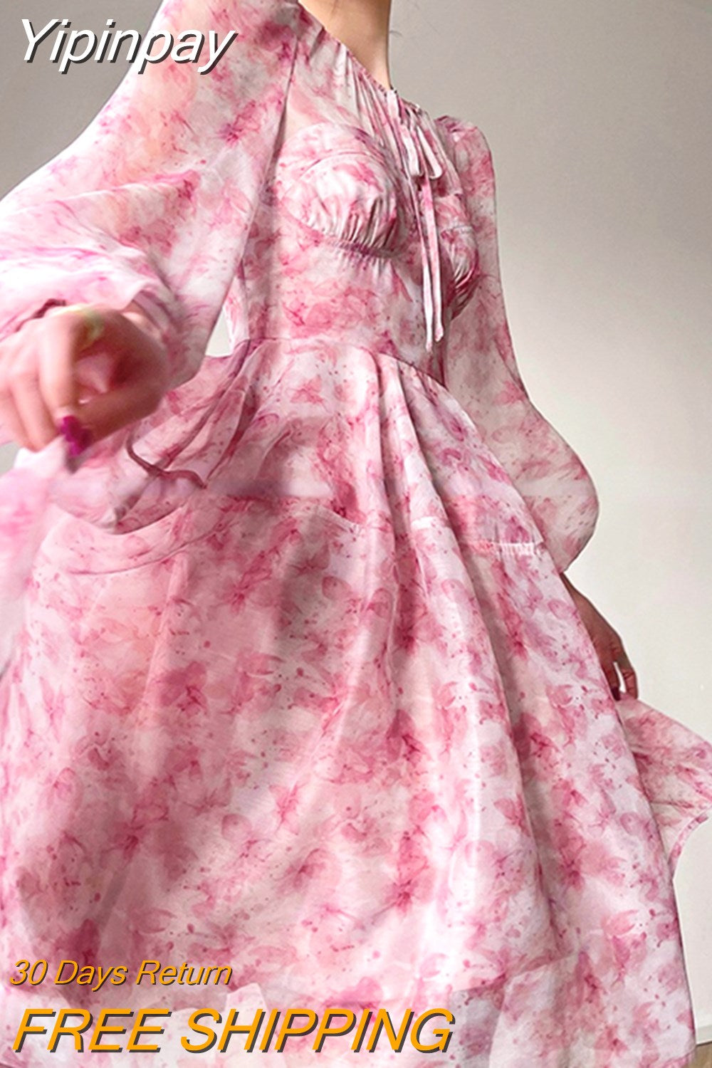 Yipinpay Lady Elegant Floral Y2k Mini Dress Boho Beach Fashion Short Party Sundress Women Casual One Piece Dress Korea Summer 2023