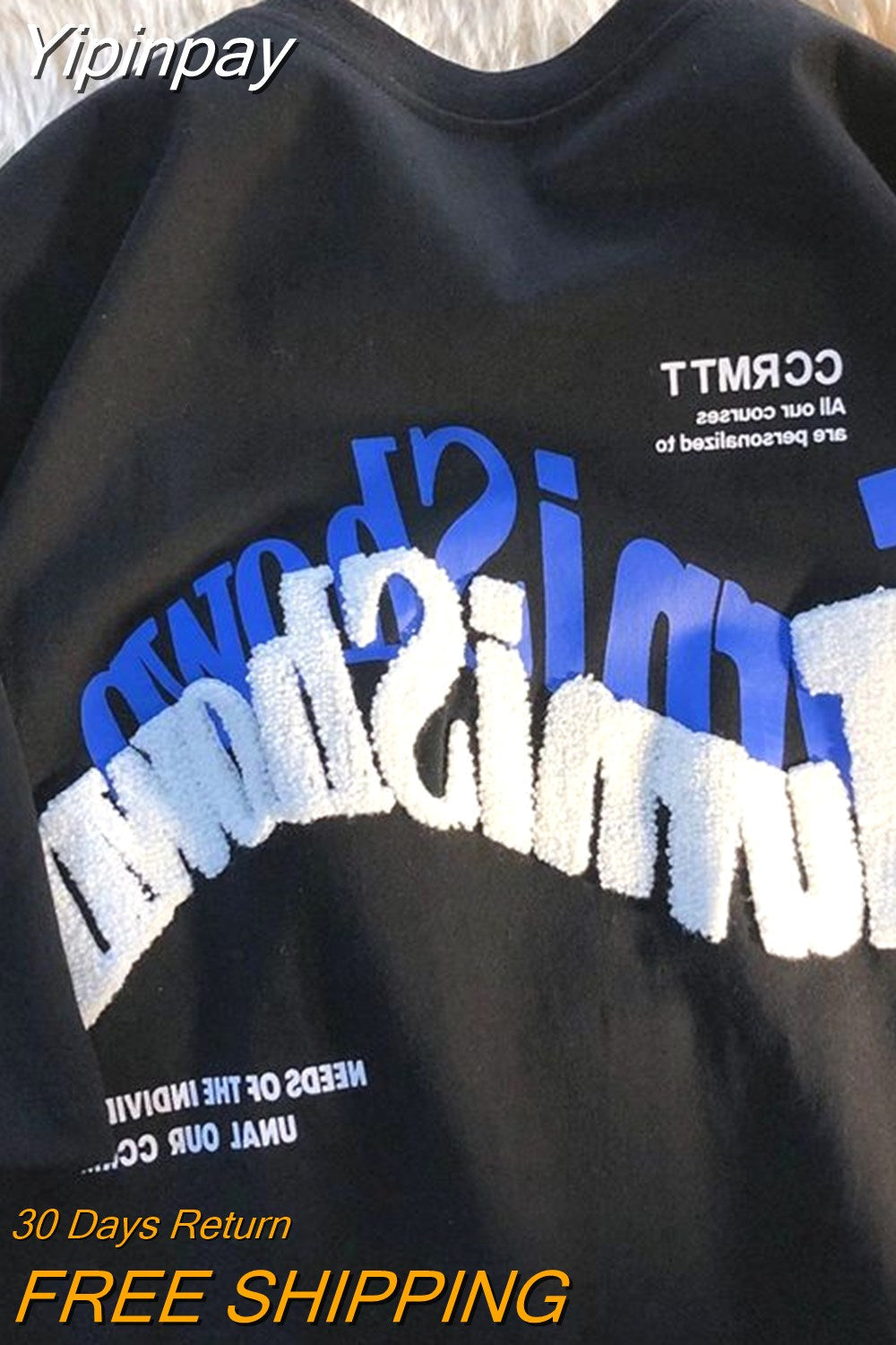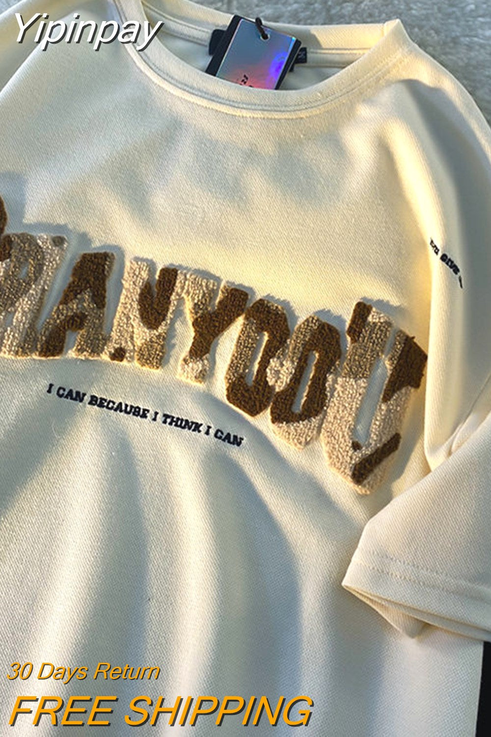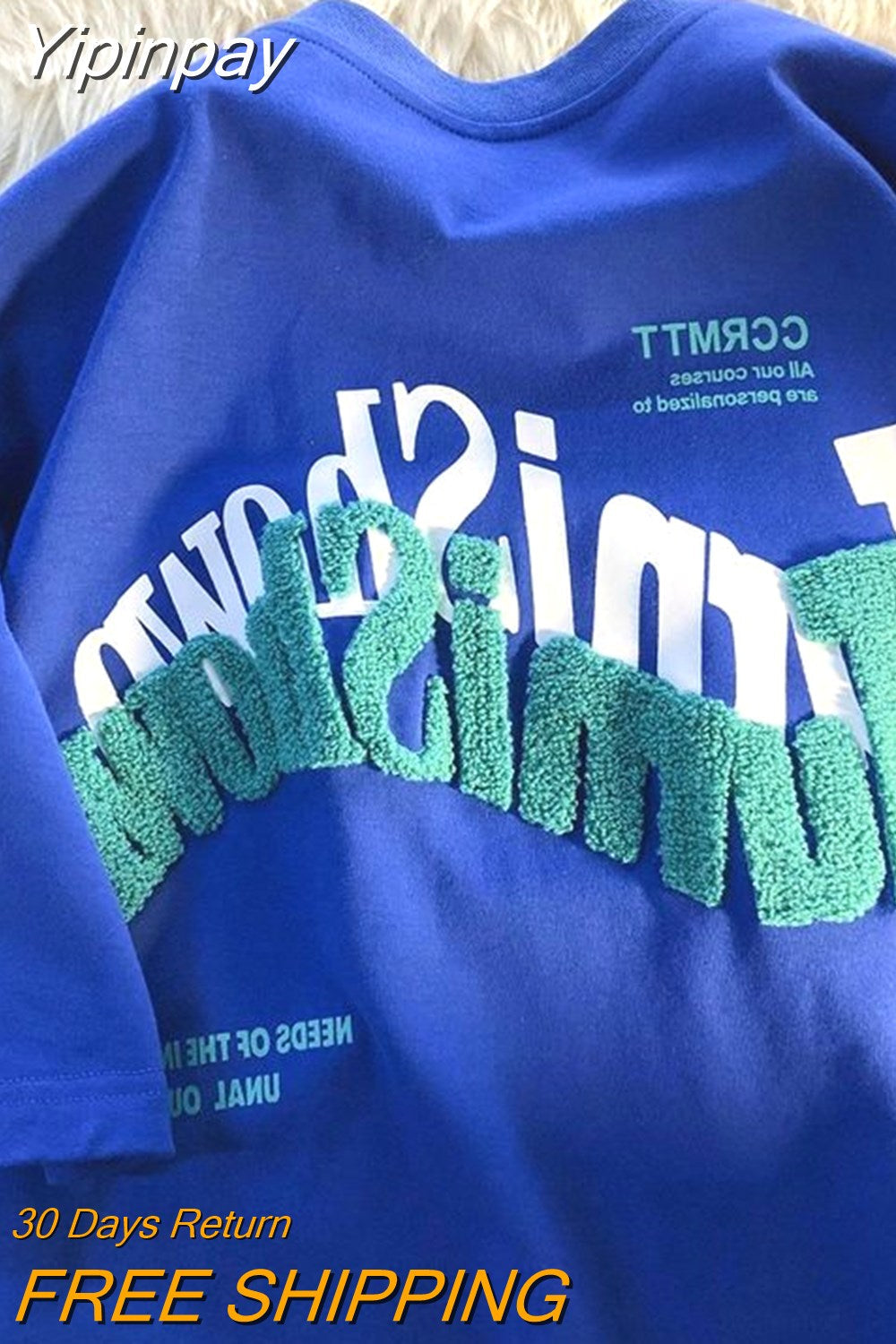 Yipinpay letter embroidery short-sleeved T-shirt women's 2023 new summer Y2K high street casual loose couple round neck T-shirt