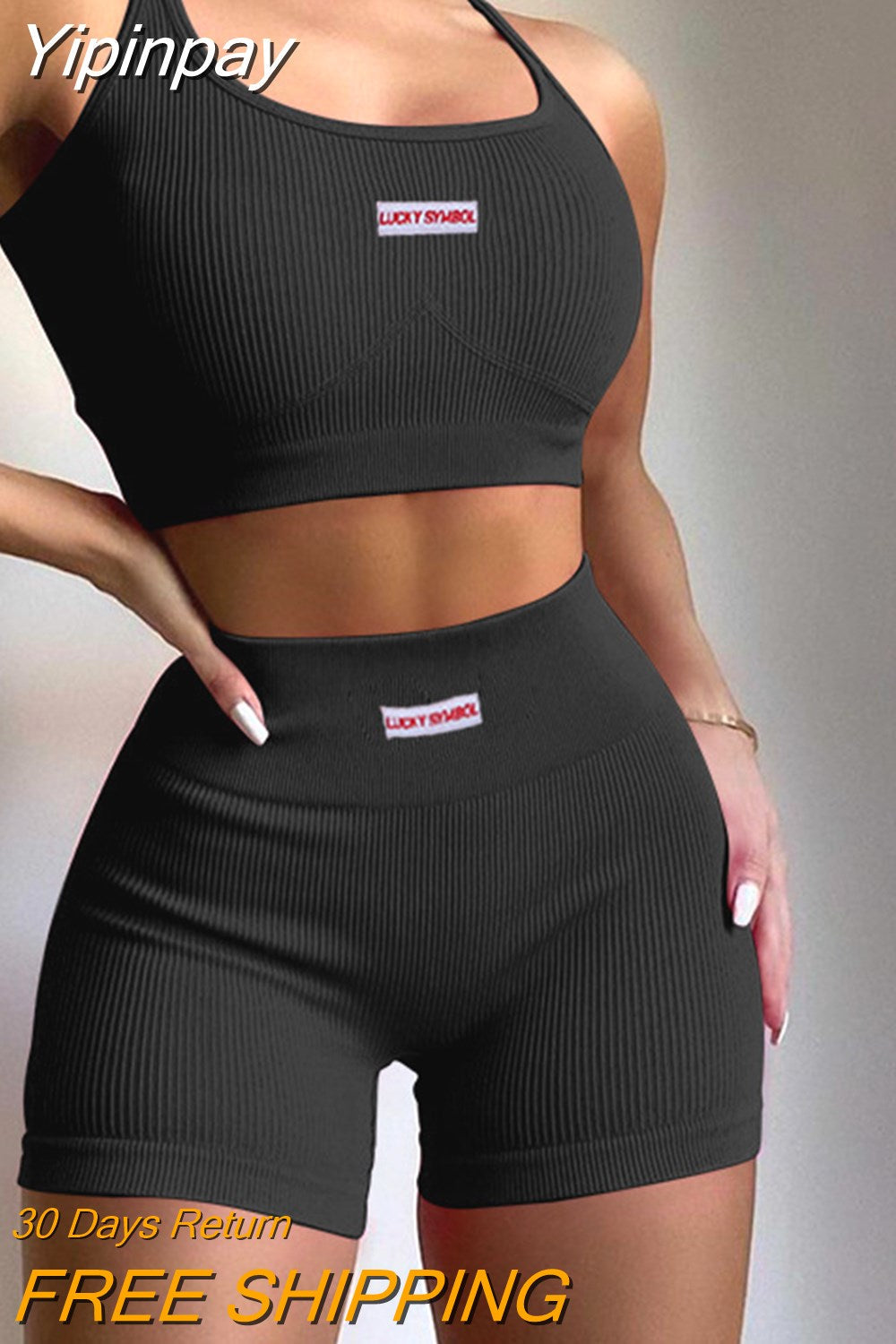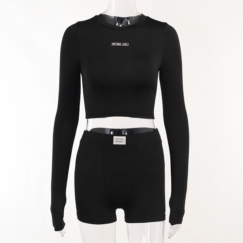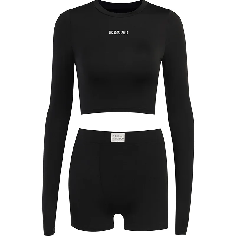 Yipinpay Letter Print 2 Two Piece Sets Tracksuit Women Matching Sets Fall Outfits 2023 Black Long Sleeve Tops And Shorts Set