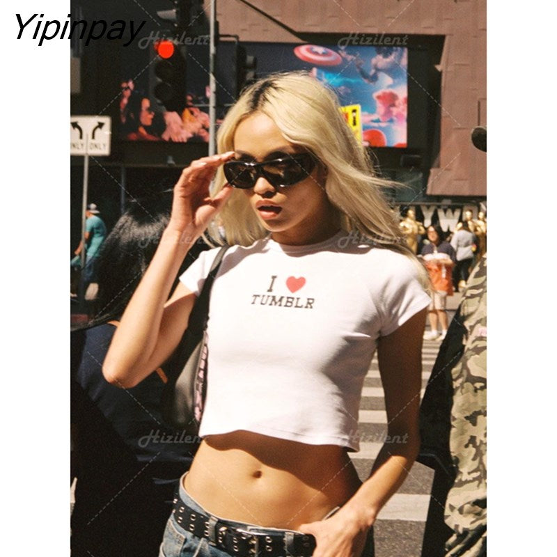 Yipinpay letter Print Baby Tee Summer emo girl Crop Tops Slim 90s fairy grunge Streetwear Harajuku Goth Cute Short Sleeve T-shirts