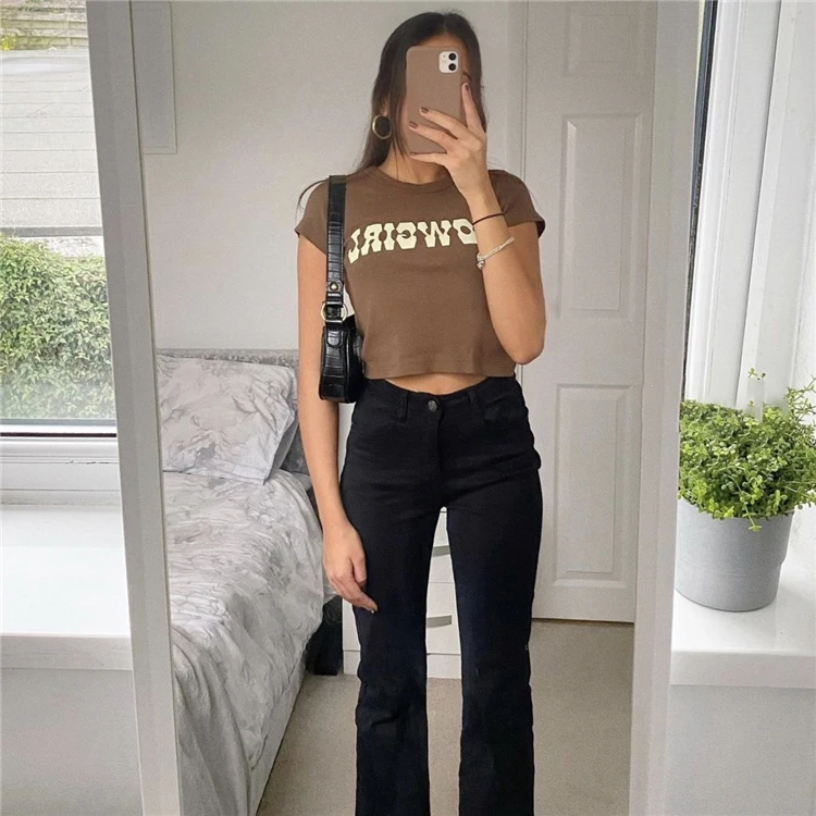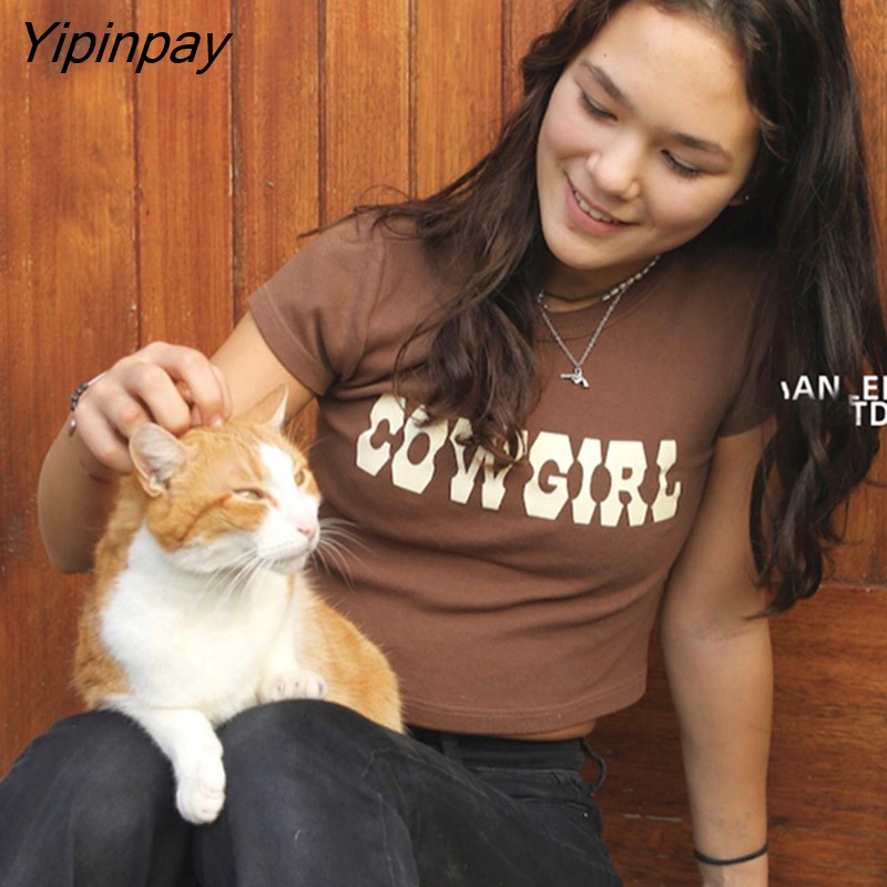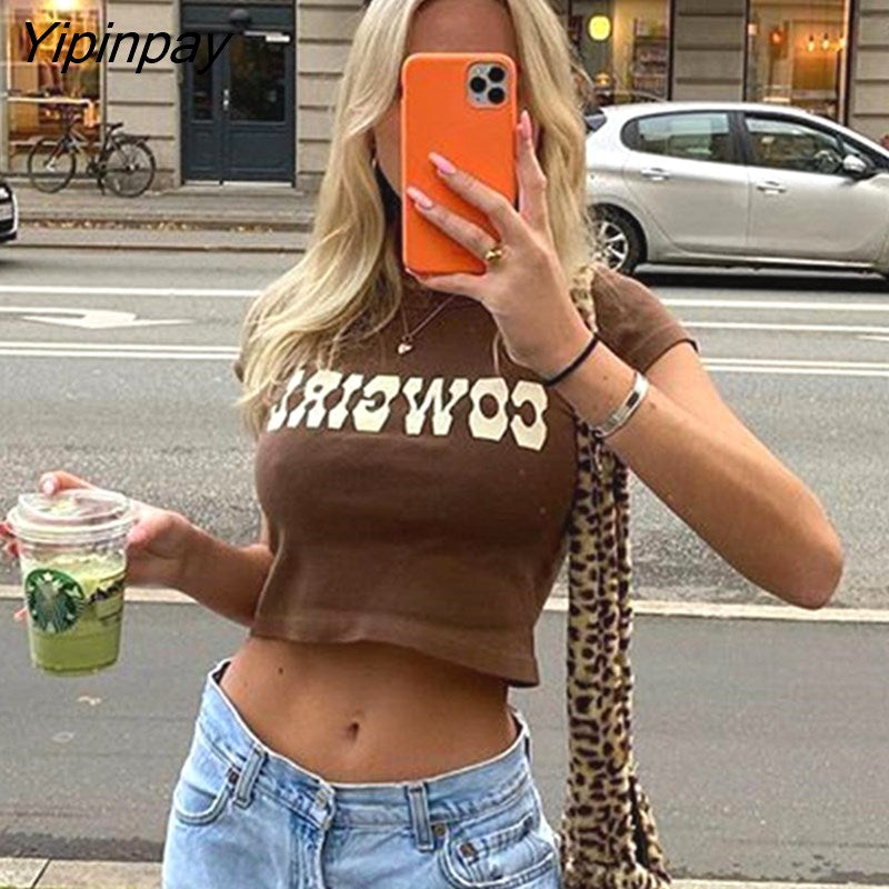 Yipinpay Letter Print Sexy Crop Tops Women Casual Short Sleeve Cotton Pullover Tees Summer Slim Streetwear T-shirt Woman 2023