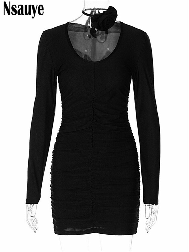 yipinpay Long Sleeve 2023 Winter Clothing Women Mini Wrap Sexy Club Fashion Dress V Neck Black Holiday Evening Party Elegant Dress