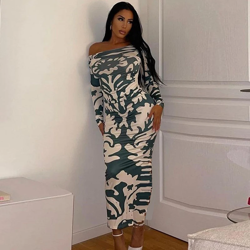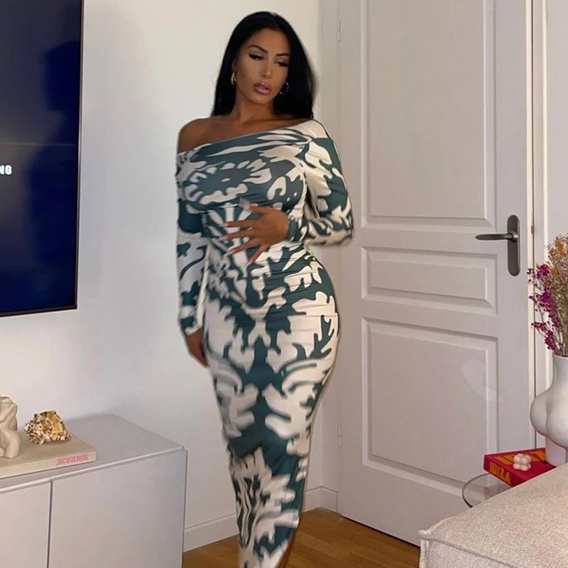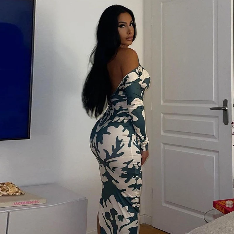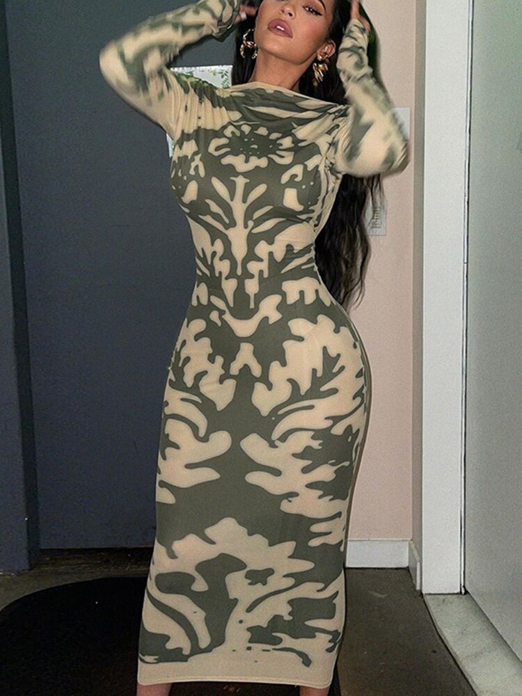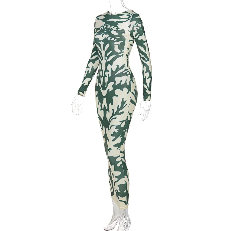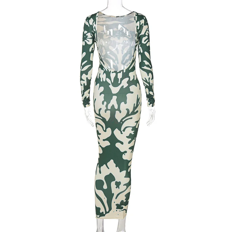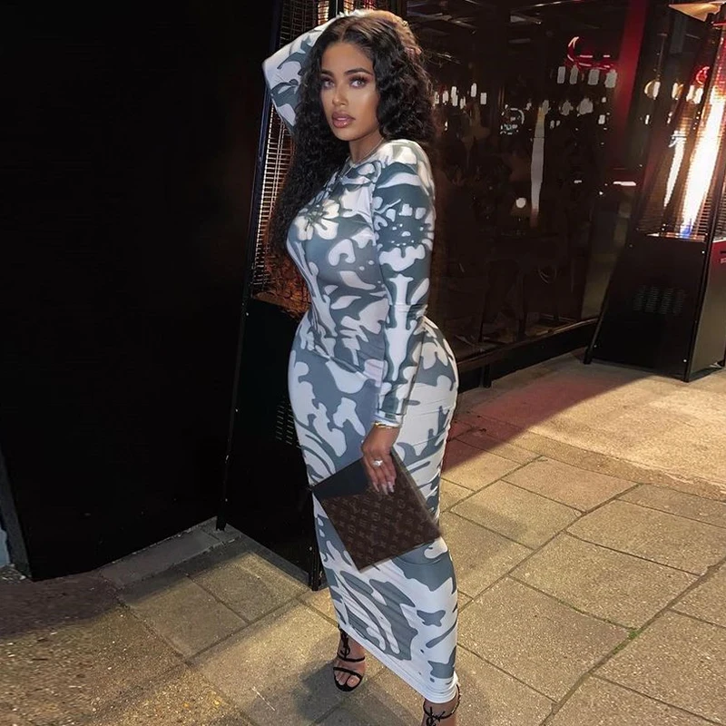 Yipinpay Long Sleeve Backless Sexy Print Dress 2023 Autumn Women O-Neck Bodycon Maxi Dresses Femme Camouflage Night Party Outfits
