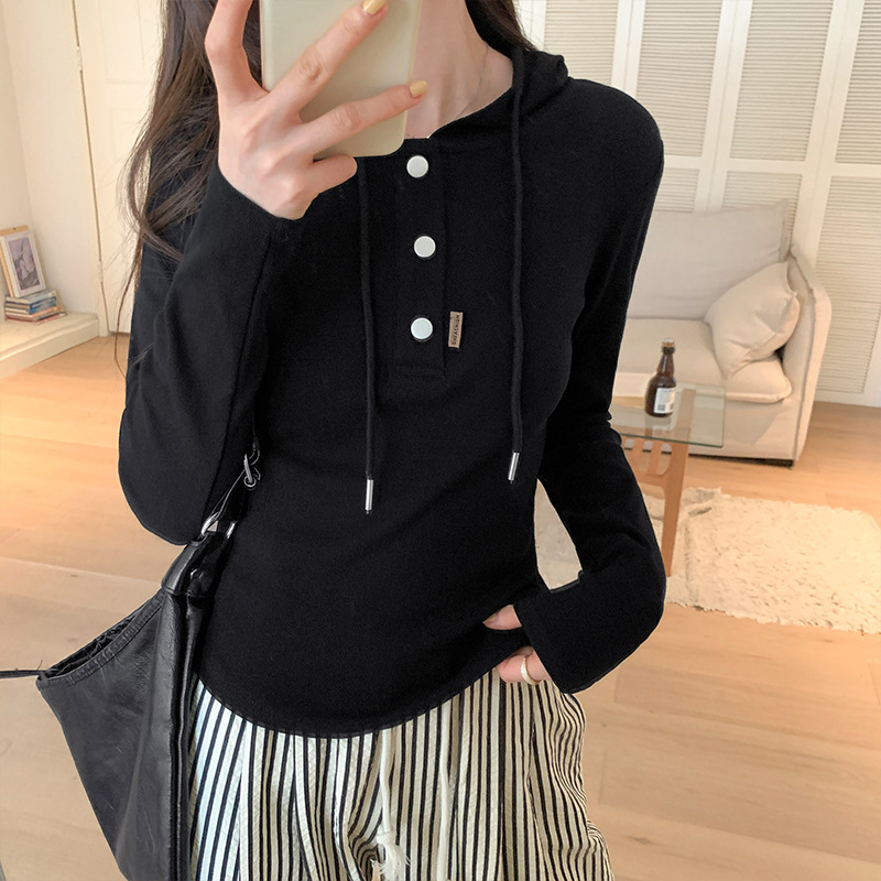 Yipinpay Long-Sleeved T-Shirt Autumn And Winter Korean Version Of Slim Short Bottomed Shirt Minority Design Farewell To Underwear Blouse