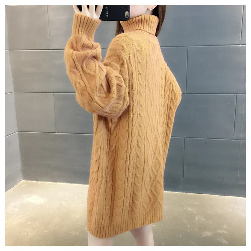 Yipinpay Loose Lazy Wind Long Sweater Women Long Sleeve Striped Jacquard Straight Knitted Sweater Women Female Spring Autumn