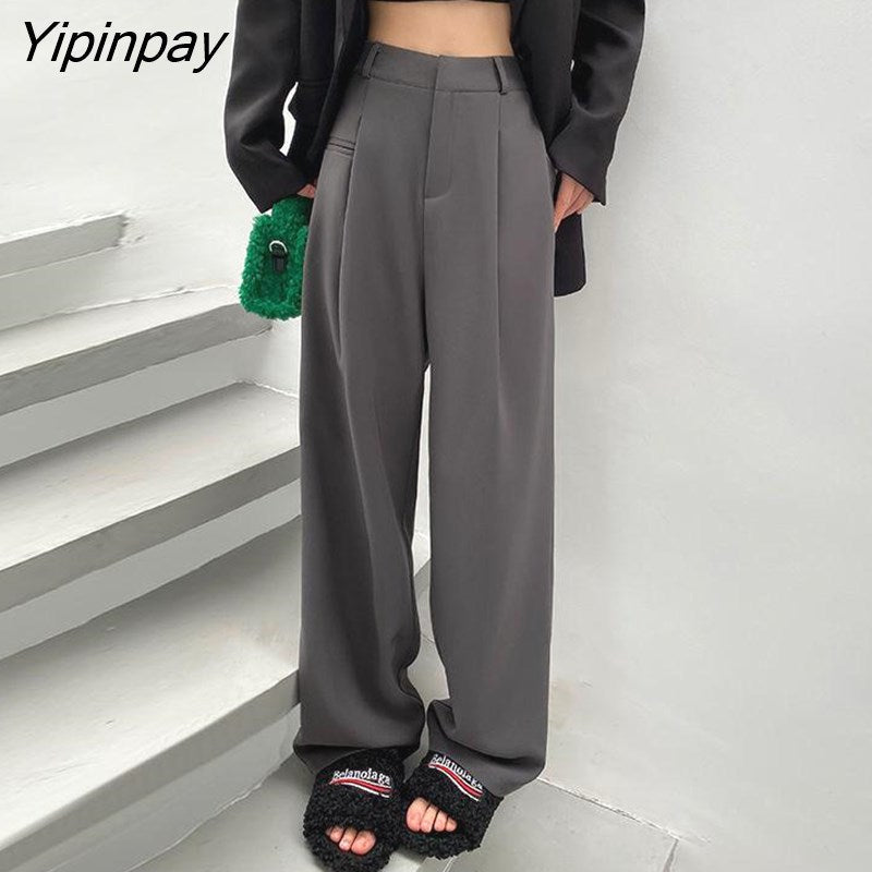 Yipinpay Loose Suits Pants Female 2023 New Casual Office Classic Straight Wide Leg Pants Women Korean Full Length Trousers