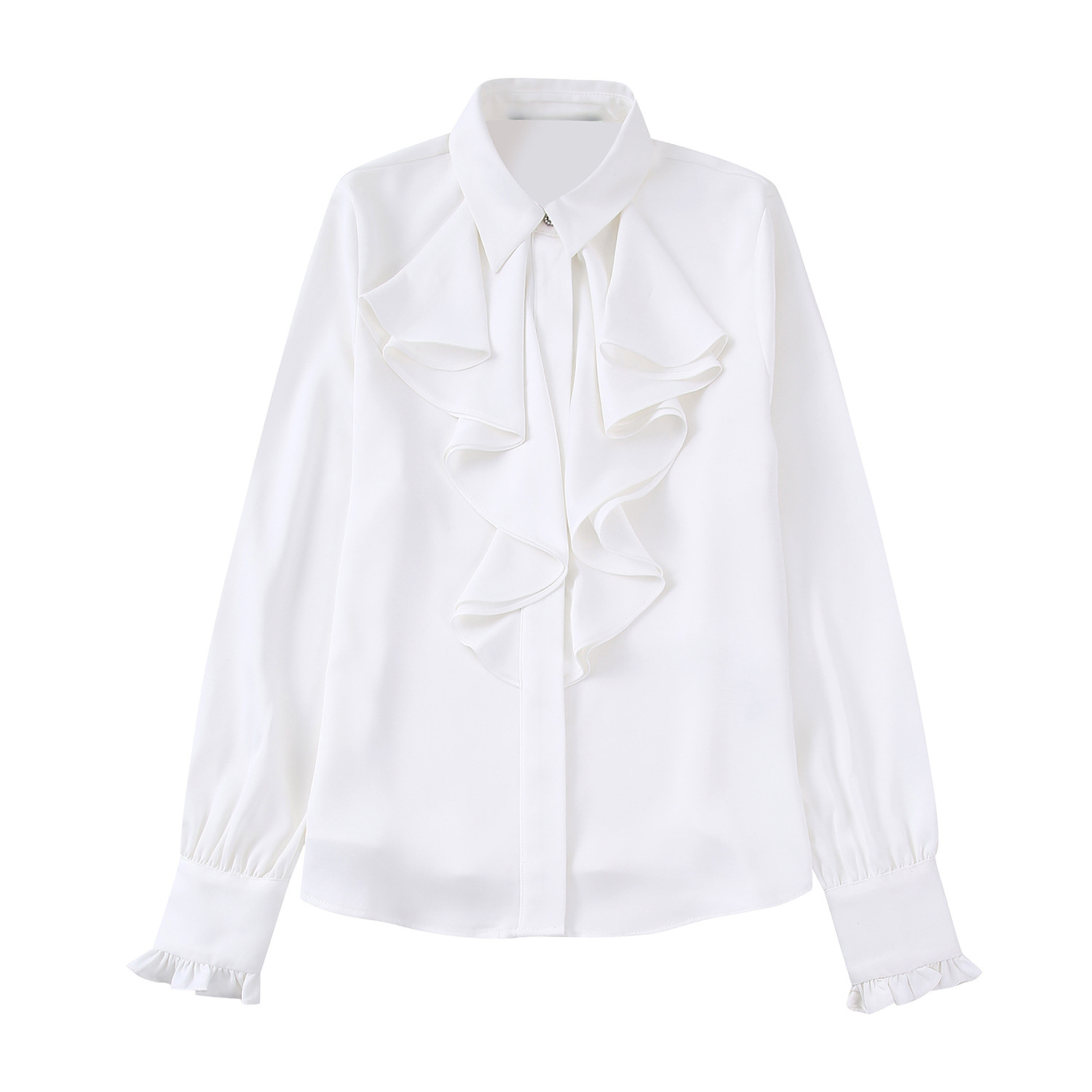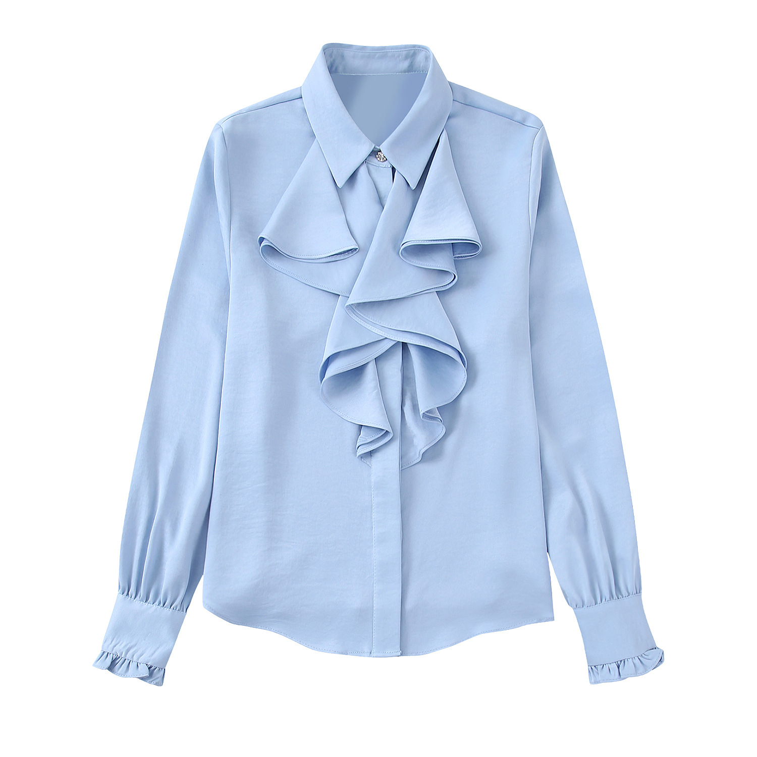 Yipinpay Lotus Leaf Laminated Decorative Satin Texture Shirt 2102796 In Early Spring