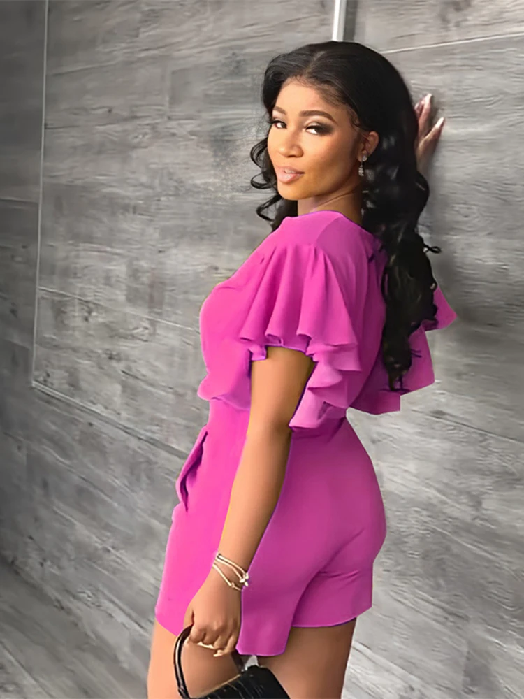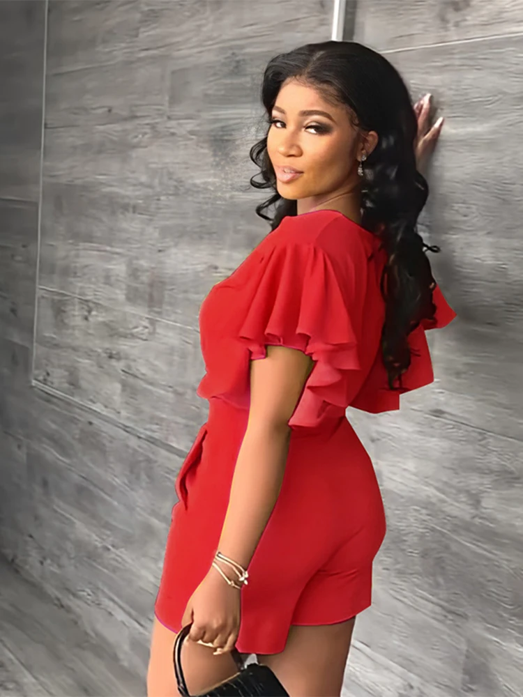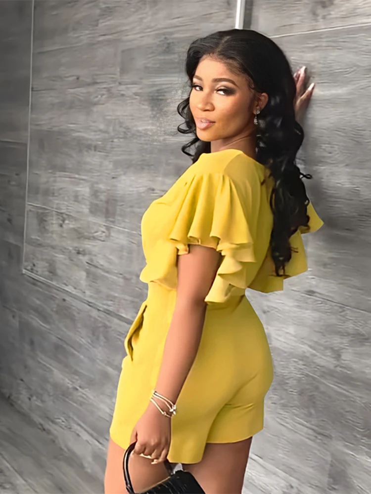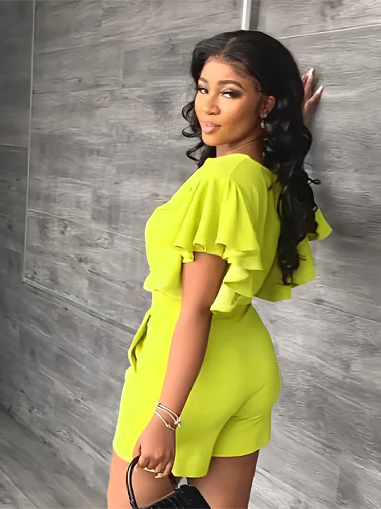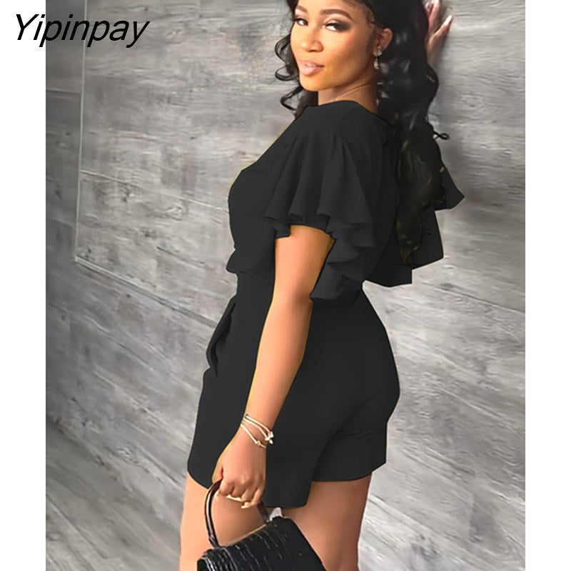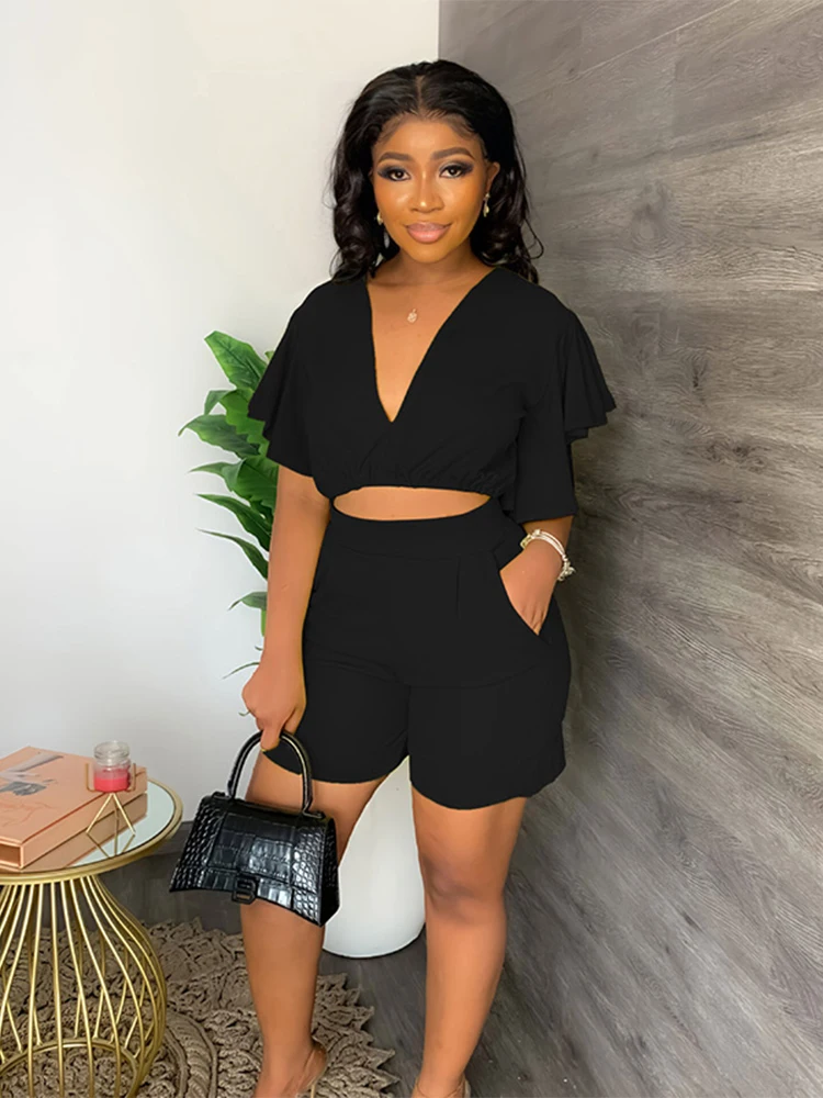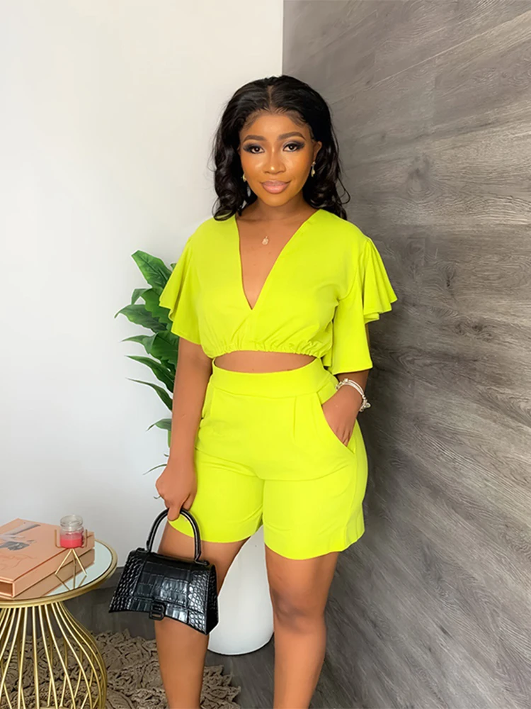 Yipinpay Lotus Leaf Sleeves Shirt Pants Suit Female V Neck Cropped Tops Short Pants 2 Piece Set Summer Girl Casual Club Outfits