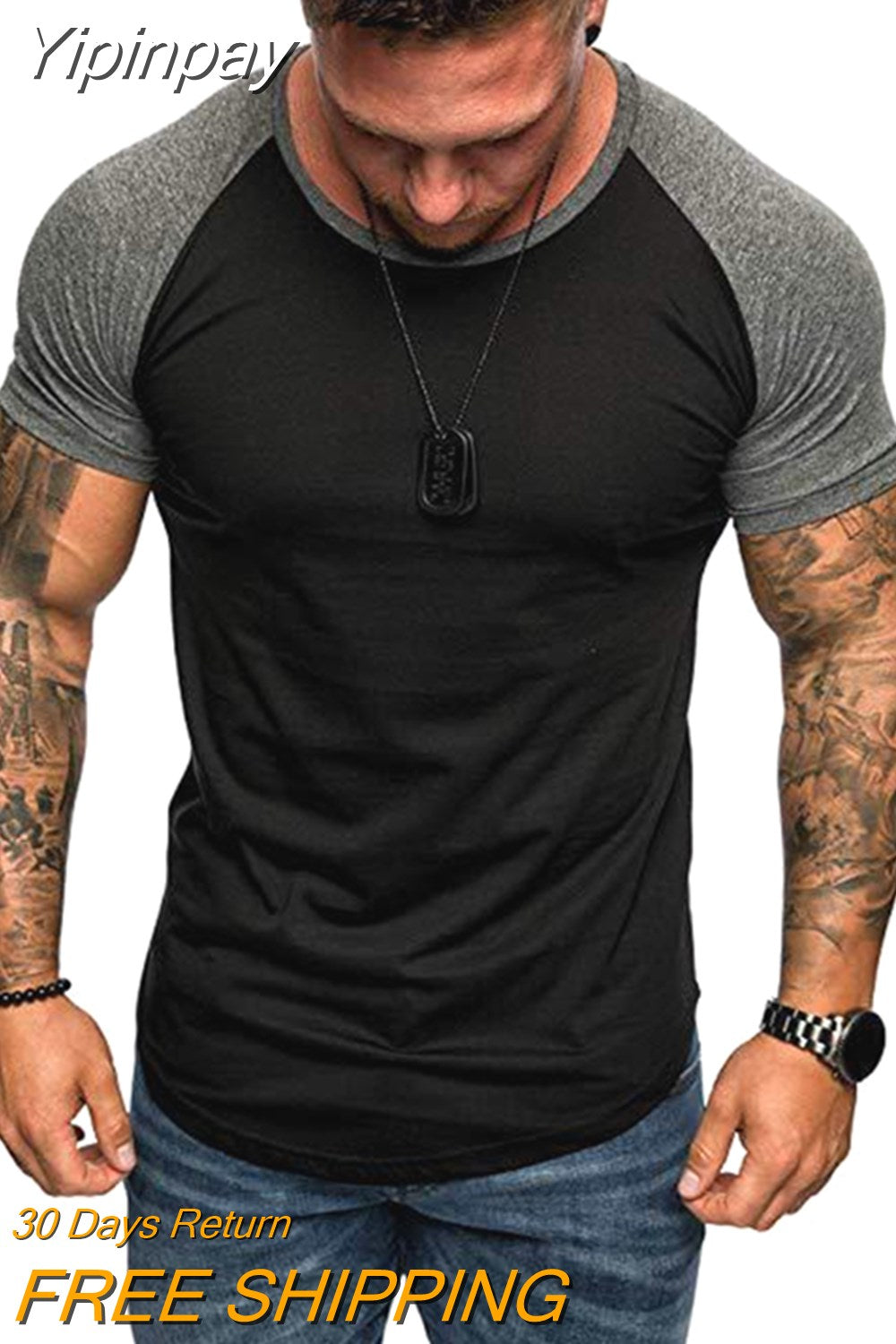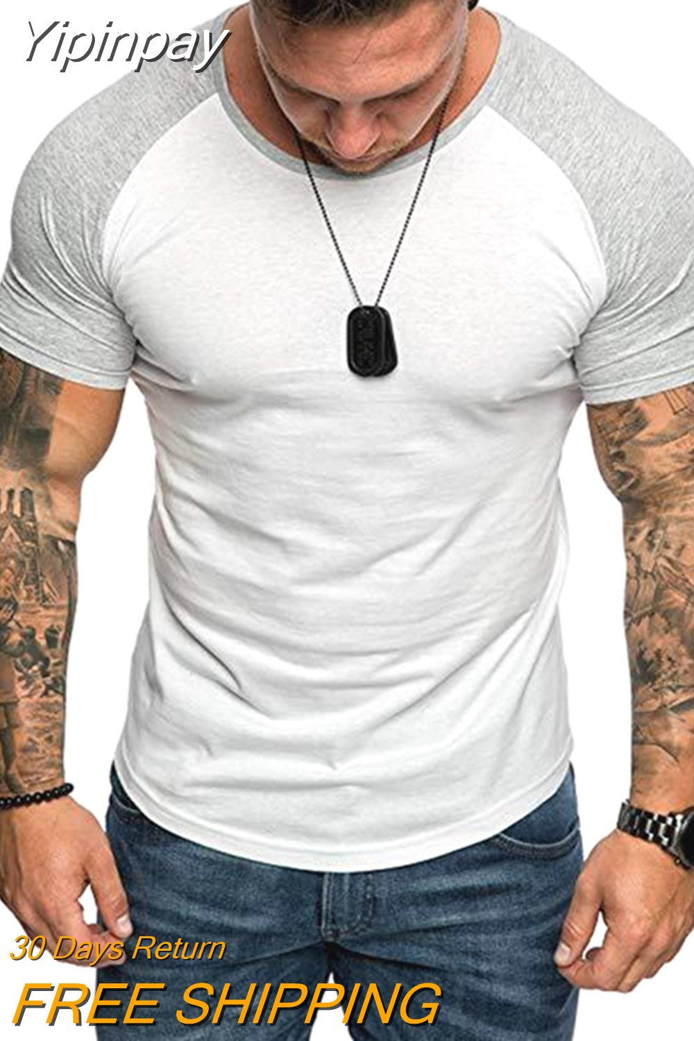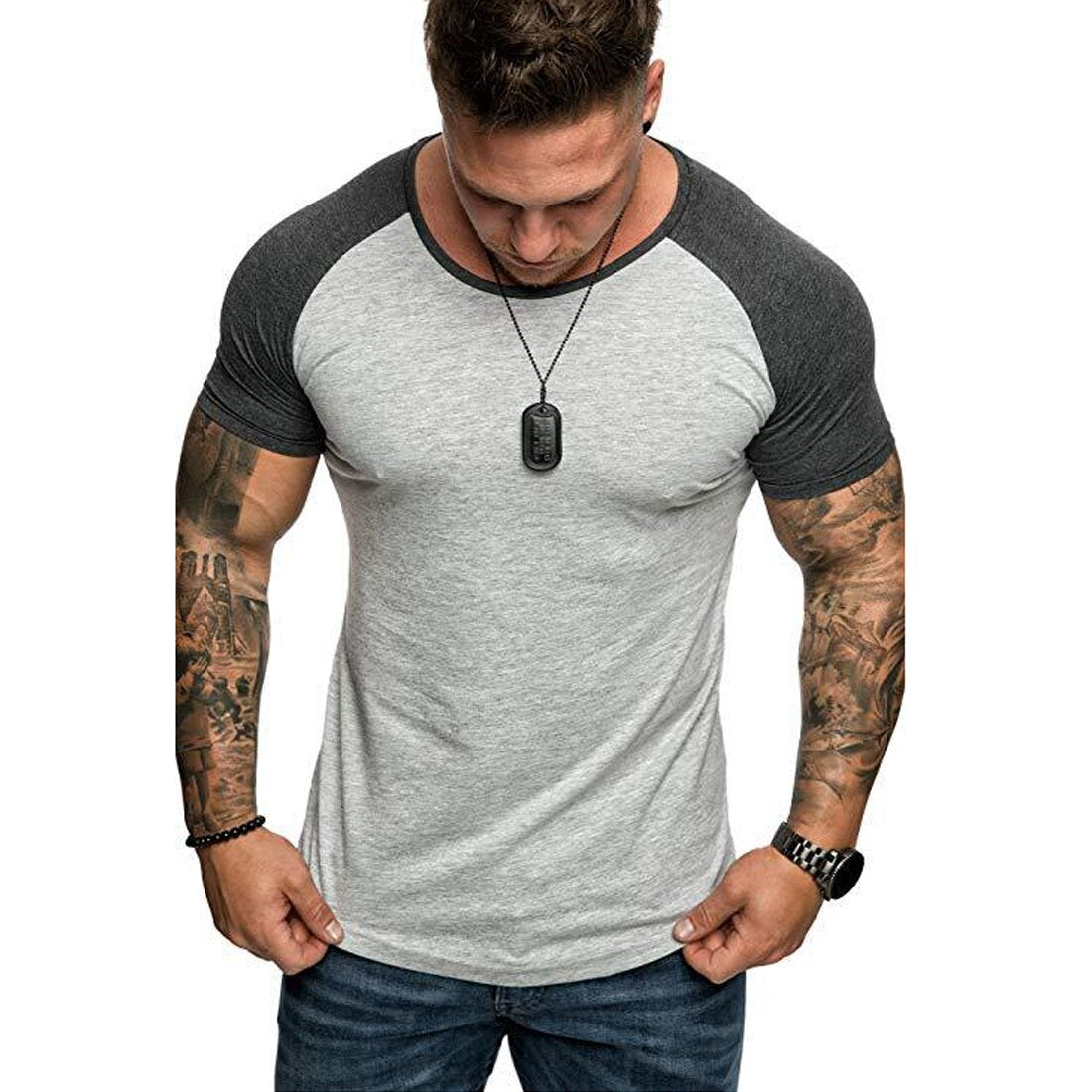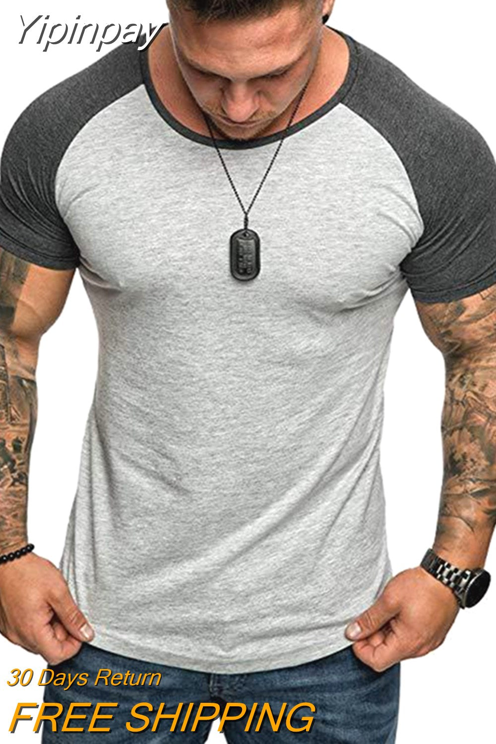 Yipinpay Men Casual Short Sleeve Tops Slim Fit Bodybuilding Muscle T-Shirt Summer Workout Sport Shirts Skin-Friendly Comfortable