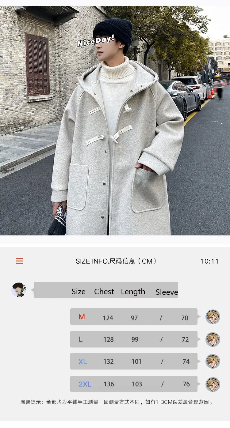 Yipinpay Men Coats Women Solid Hooded Long Jacket with Cowhorn 2023 New Korean Casual Loose Coat Fashion Male Clothing for Unisex