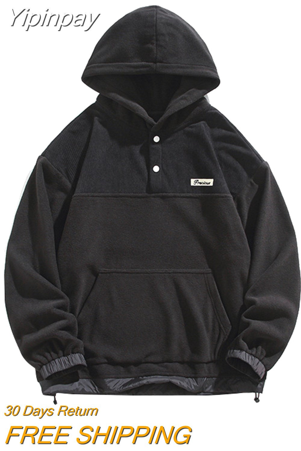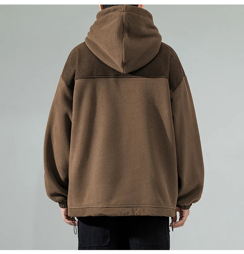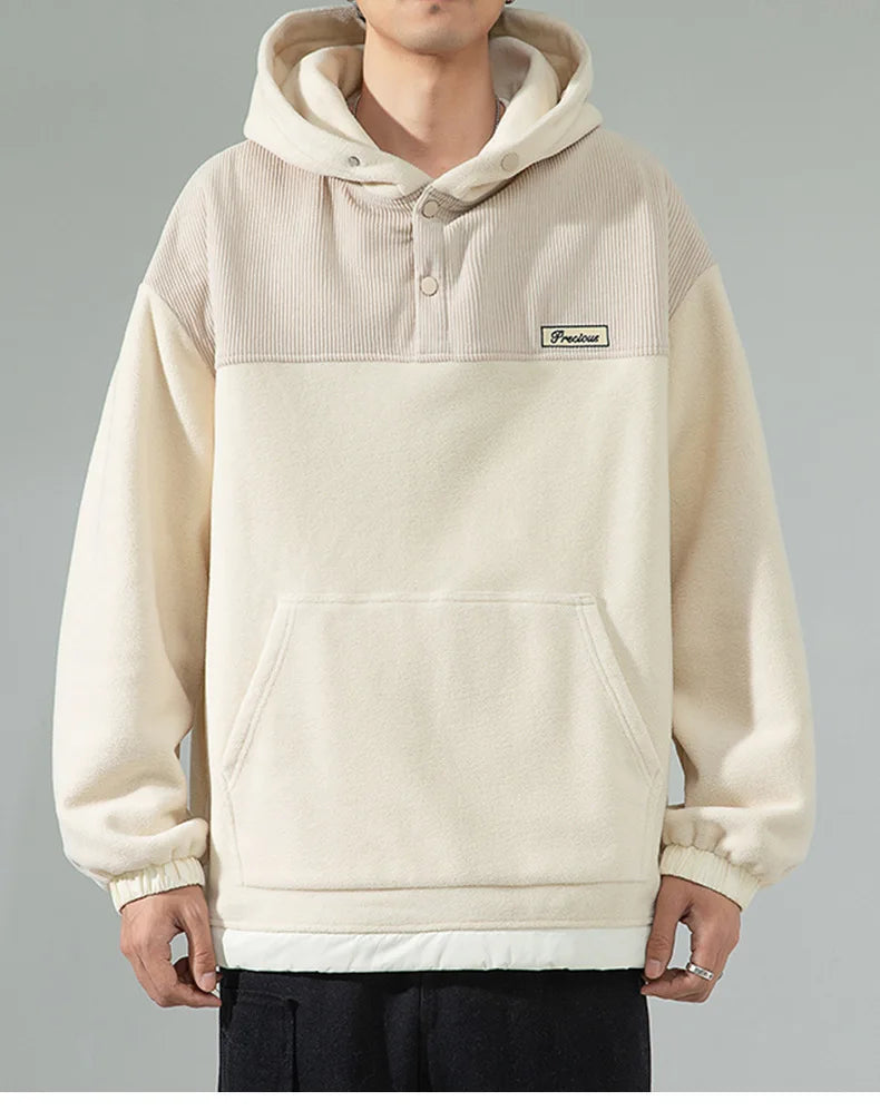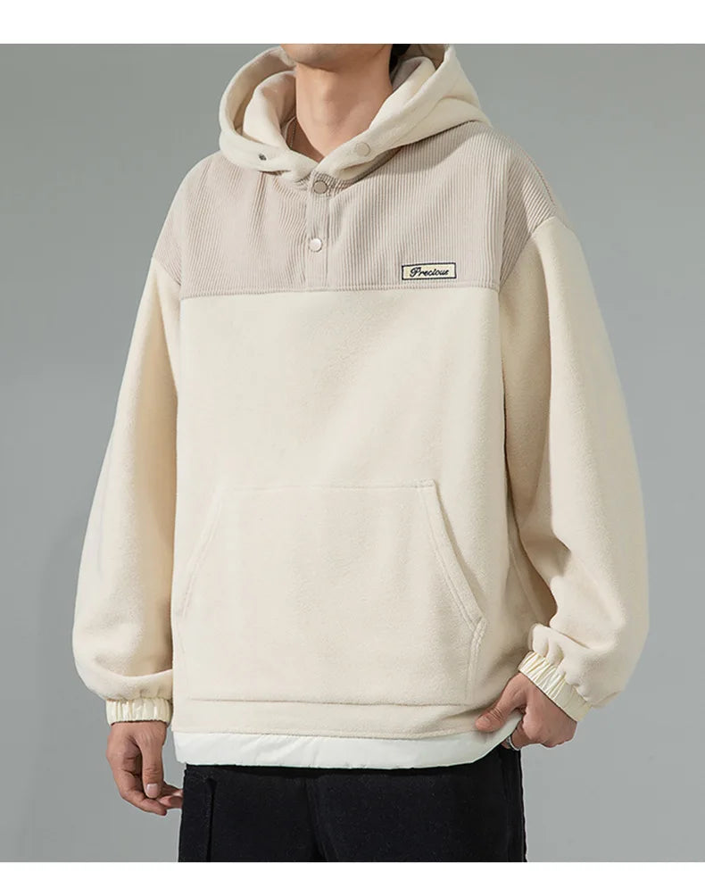 Yipinpay Men Fleece Hoodies Autumn Winter New Loose Harajuku Pullover Tops Streetwear Long Sleeve Sweatshirts Hip Hop Men's Clothing