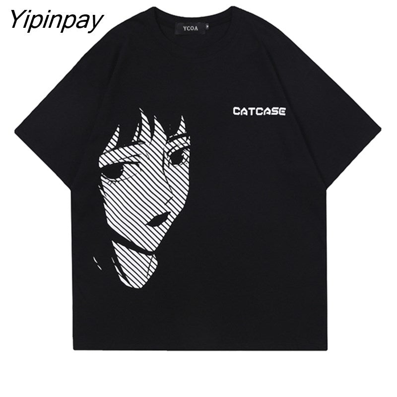 Yipinpay Men T-Shirt Oversized Harajuku Anime Girl Print Aesthetic Y2k Tops Tees Summer Short Sleeve Cotton Hip Hop Clothing