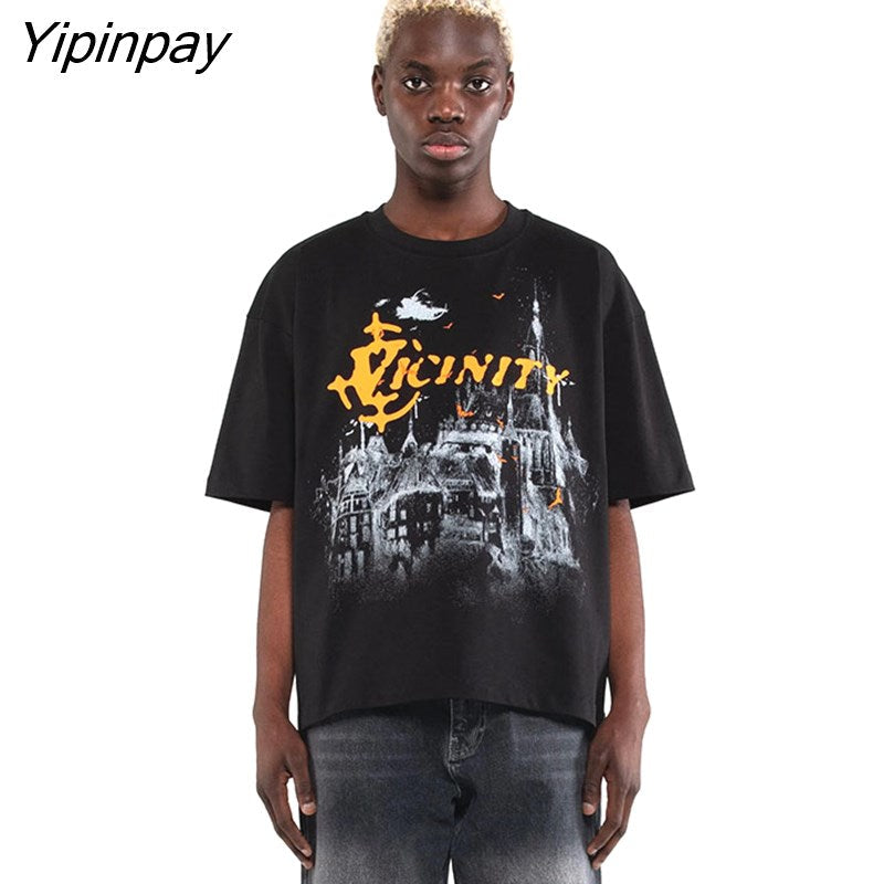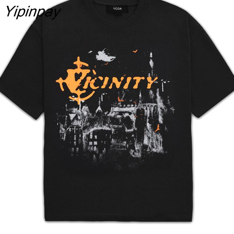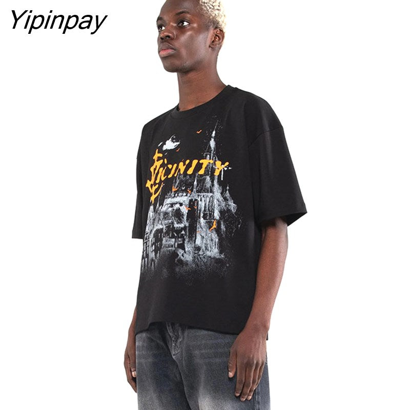 Yipinpay Men T-Shirt Oversized Retro Harajuku Hip Hop Streetwear Y2k Graphic Black Summer Short Sleeve Cotton Tops Tees Printed Clothing