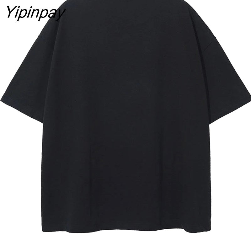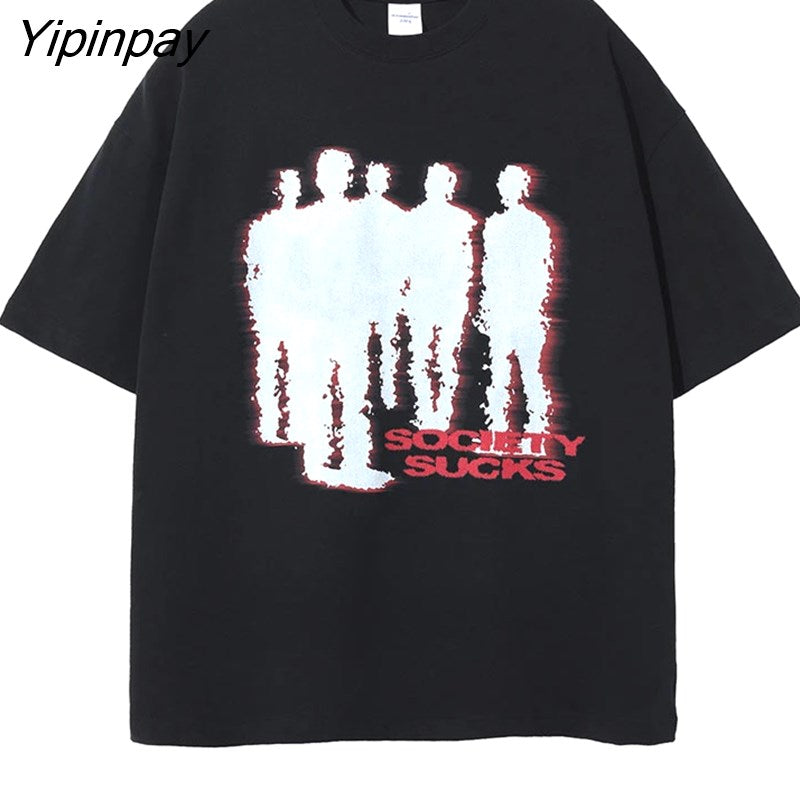 Yipinpay Men Tshirt Cotton Shadow Letter Print Punk Hip Hop Gothic Streetwear Short Sleeve Summer Korean Fashion Tops Tees Y2k Clothing