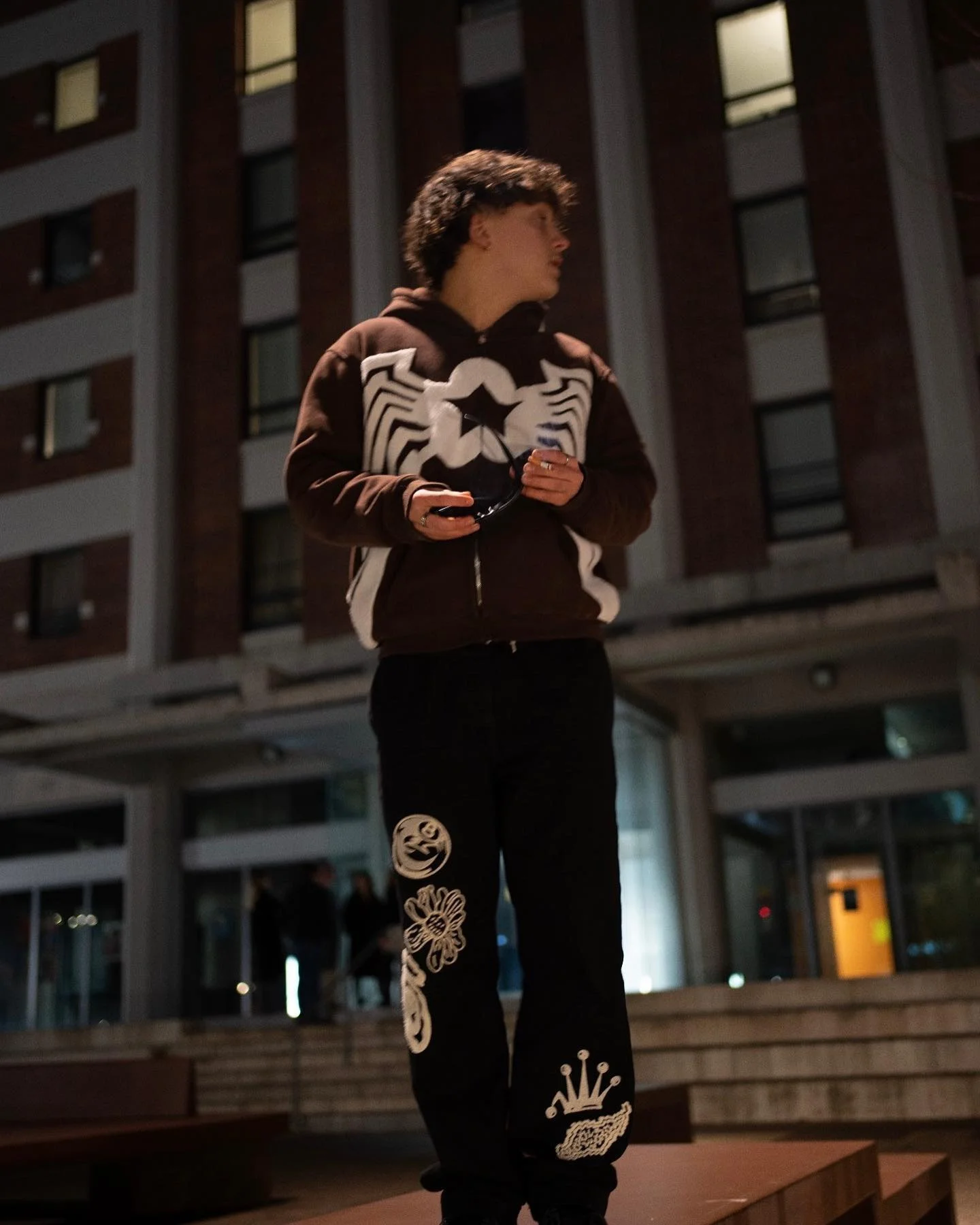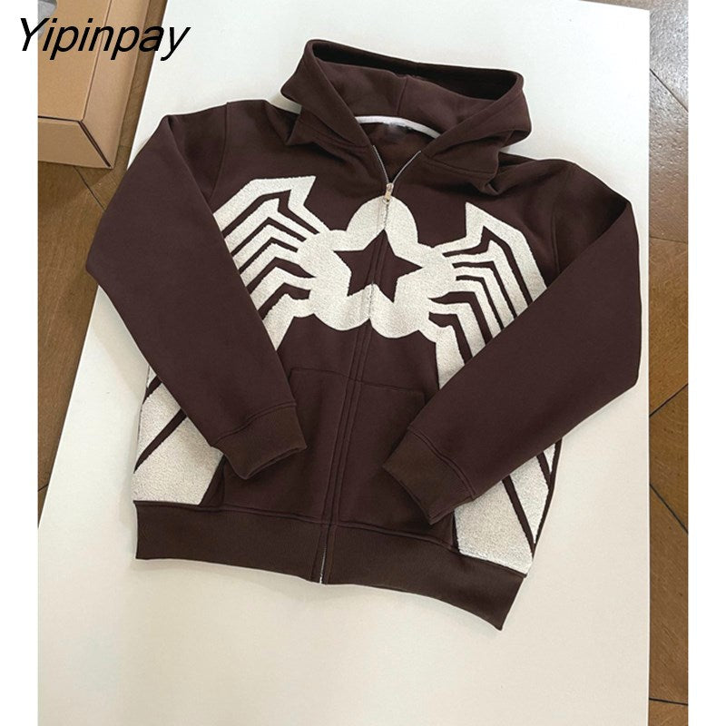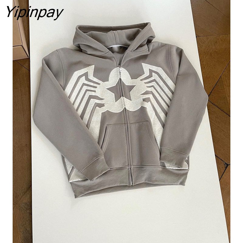 Yipinpay Men Y2K Fashion Hoodie Rhinestones letter graphics Print Zip Hoodie clothes Hoodies Goth Long Sleeve Sweatshirt Oversized Top