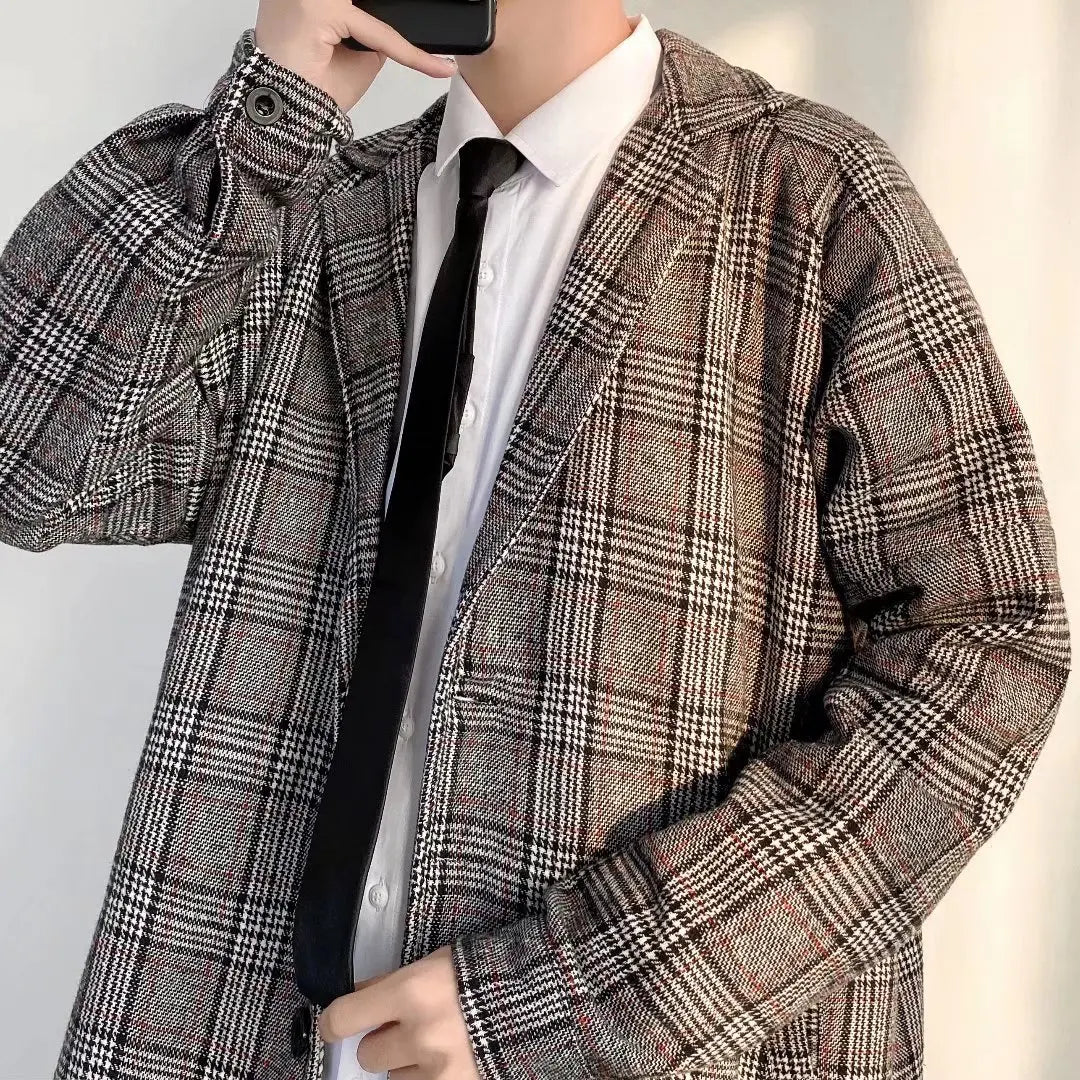 Yipinpay Men's Coat Korean Long Plaid Woolen Overcoat Fashion Casual Single-breasted Long Jackets luxury Winter Clothes for Men 2023