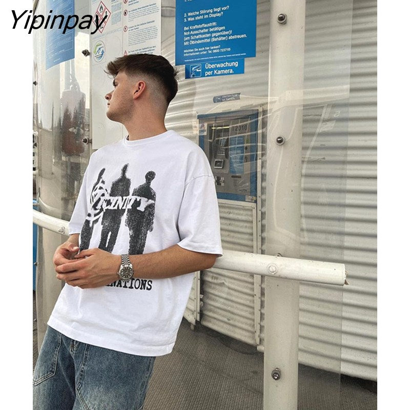 Yipinpay Men's T-Shirt Oversized Hip Hop Cotton Short Sleeve Print Graphic Korean Fashion Tops Aesthetic Harajuku Y2k Streetwear Clothing