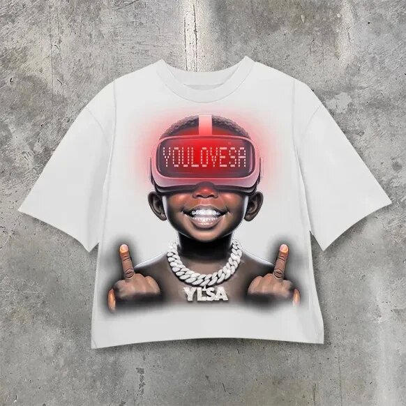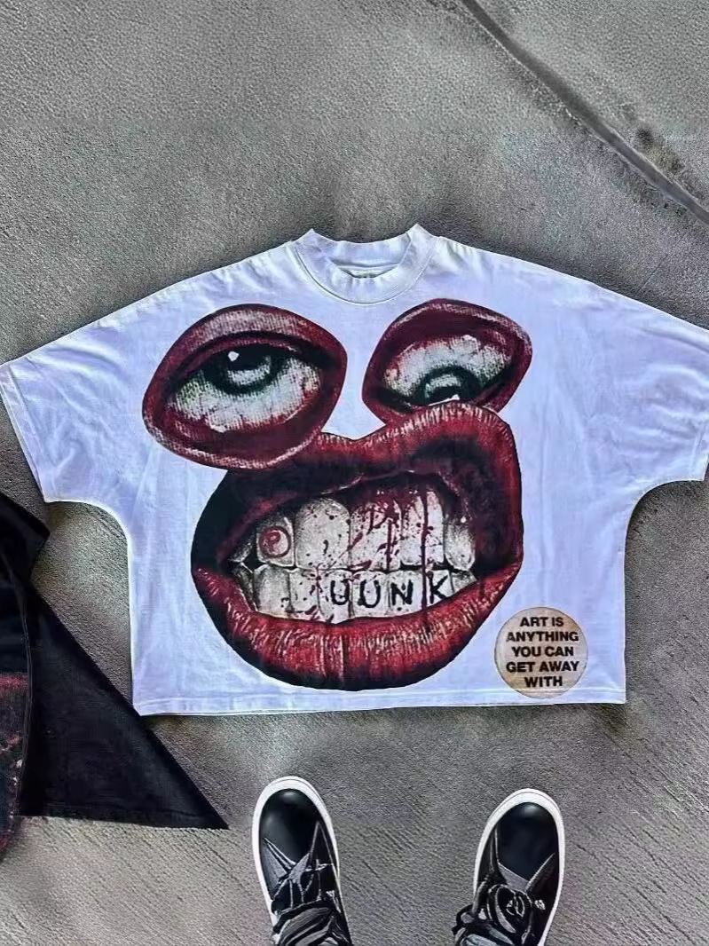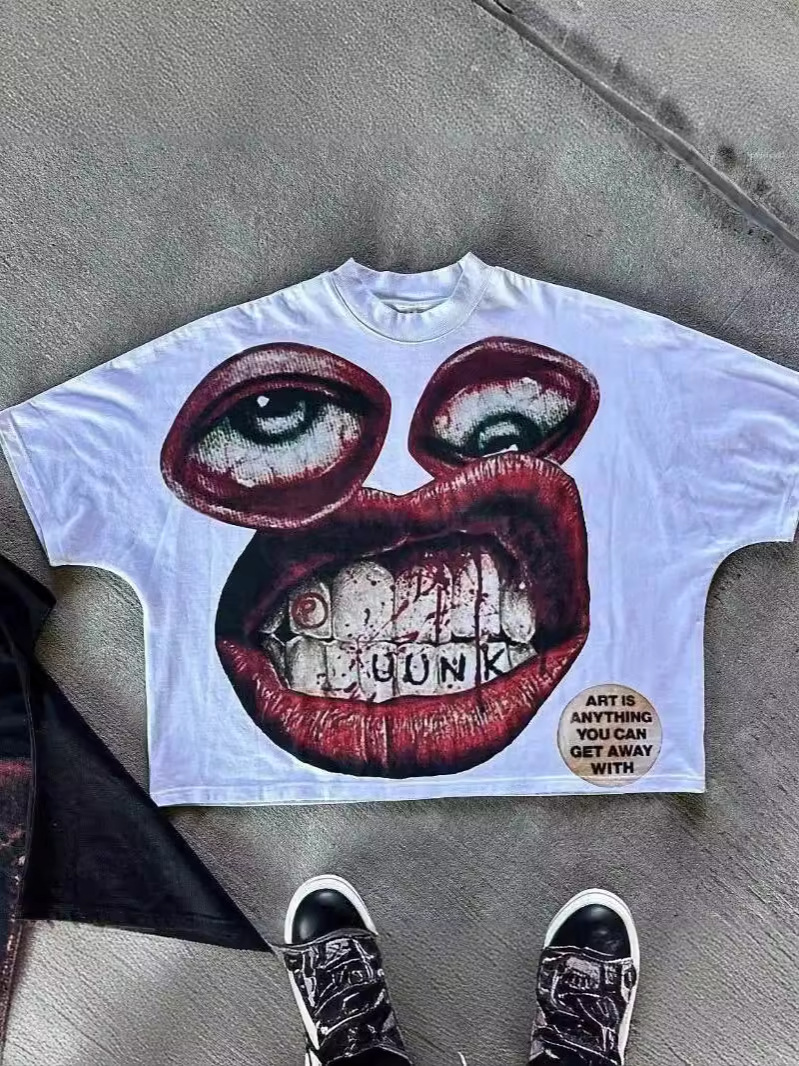 Yipinpay Men's T-Shirt Y2K Cotton Man Harajuku Street Hip-Hop Big Eyes Mouth Pattern Printing Super Classic