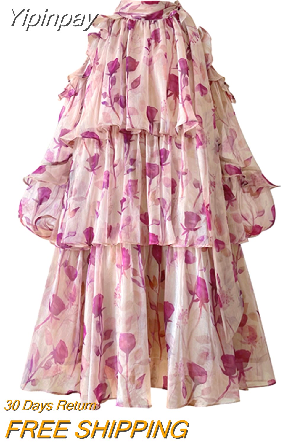 Yipinpay Mini Dress Beach Style Woman Boho 2023 Autumn Long Sleeve Short Party Dress Casual Elegant Korean Fashion Dress Female
