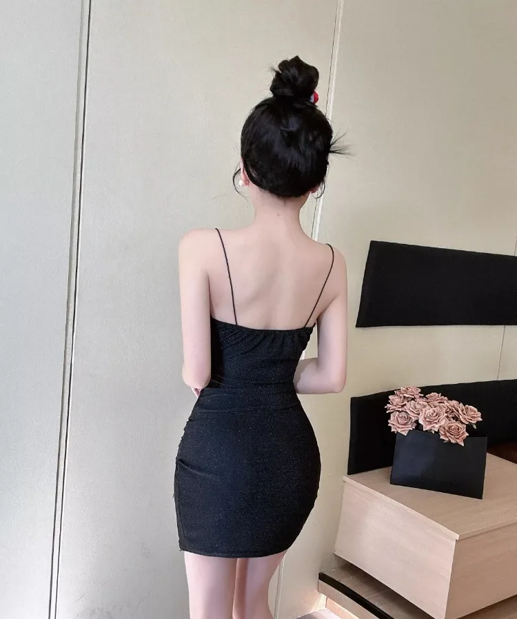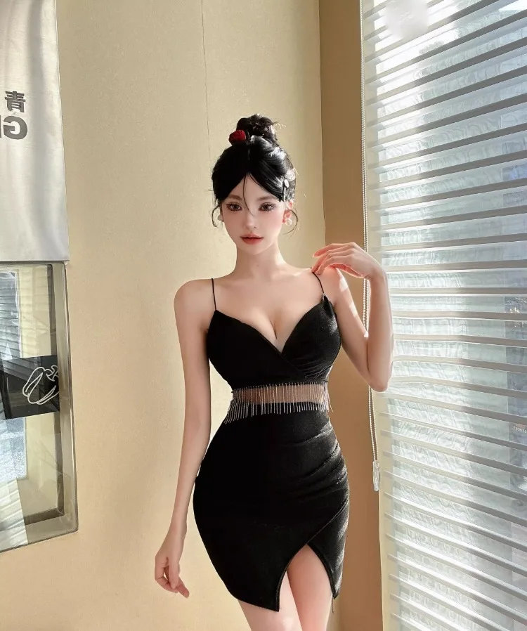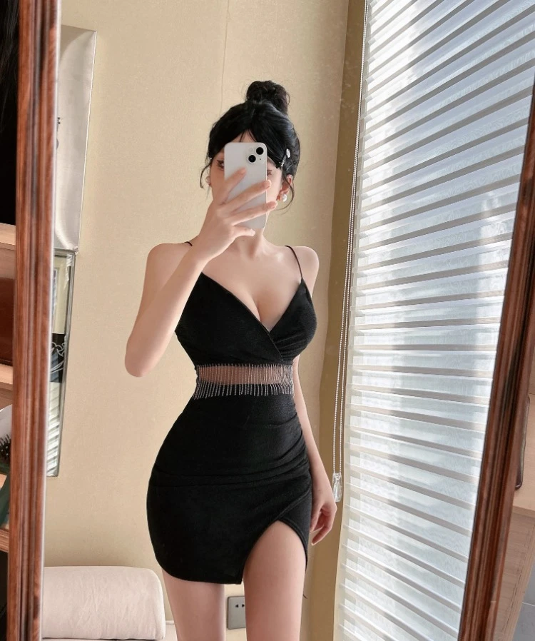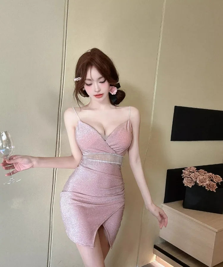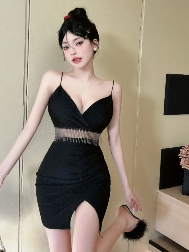 Yipinpay Mini Dresses Women Sexy Sleeveless V Neck 2024 Spring New Split Backless French Style Chic Party Elegant Clubwear Female