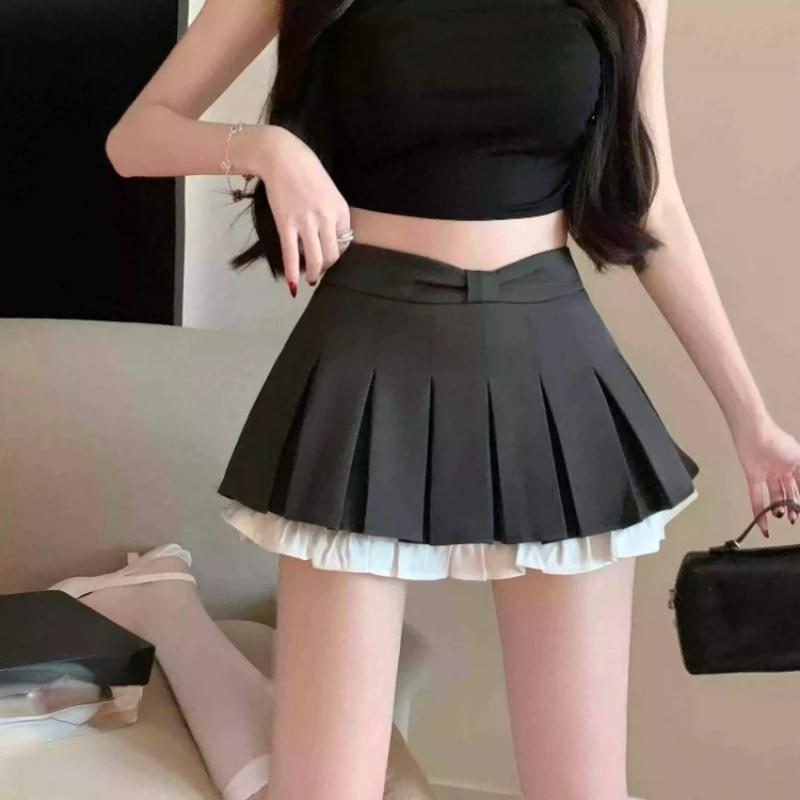 Yipinpay Mini Skirts Women Bowknot Sweet High Waist Slim French Style Chic Sexy Pleated Skirt Spring New Fashion Female Casual