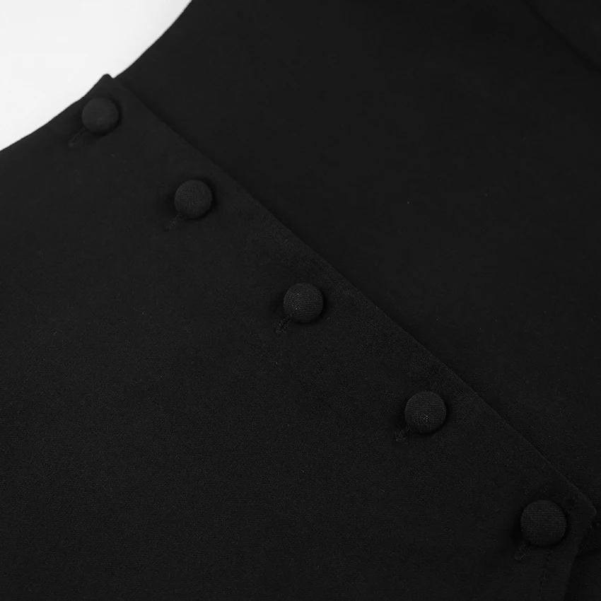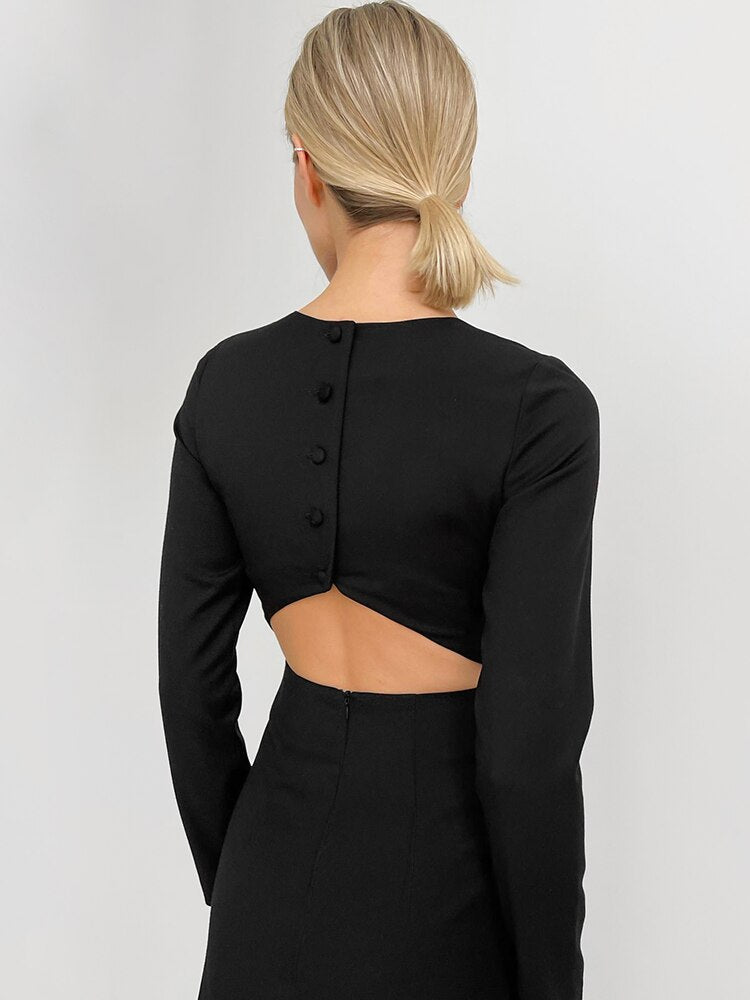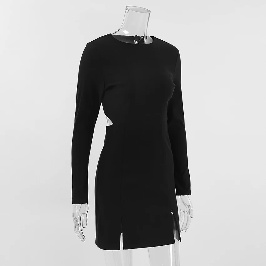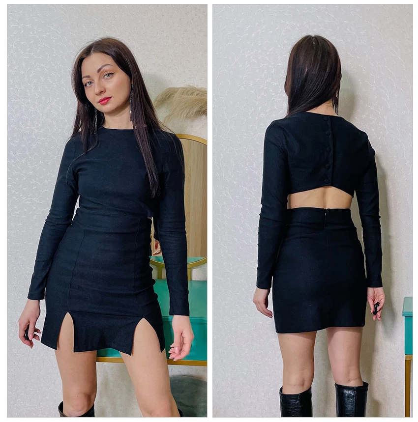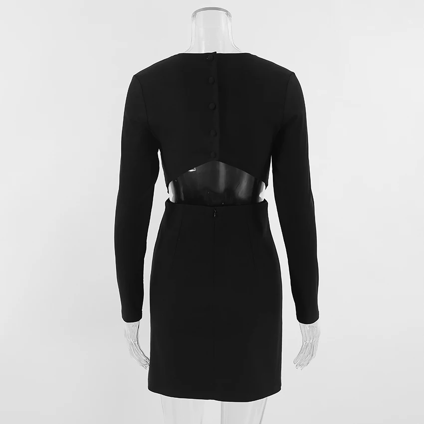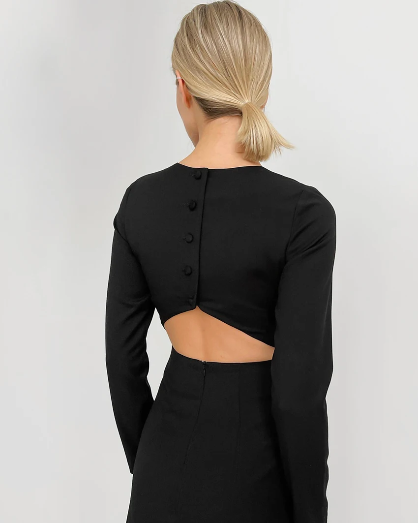 Yipinpay Mini Solid Black Dress Women Long Sleeve Backless Sexy Dress Spring 2023 Chic Slit Female Short Dress Button O-Neck